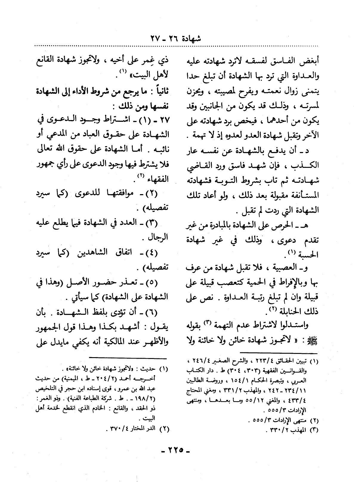 27 - (1) - اشْتِرَاطُ وُجُودِ الدَّعْوَى فِي الشَّهَادَةِ عَلَى حُقُوقِ الْعِبَادِ مِنَ الْمُدَّعِي أَوْ نَائِبِهِ. أَمَّا الشَّهَادَةُ عَلَى حُقُوقِ اللَّهِ تَعَالَى فَلاَ يُشْتَرَطُ فِيهَا وُجُودُ الدَّعْوَى عَلَى رَأْيِ جُمْهُورِ الْفُقَهَاءِ (2) .