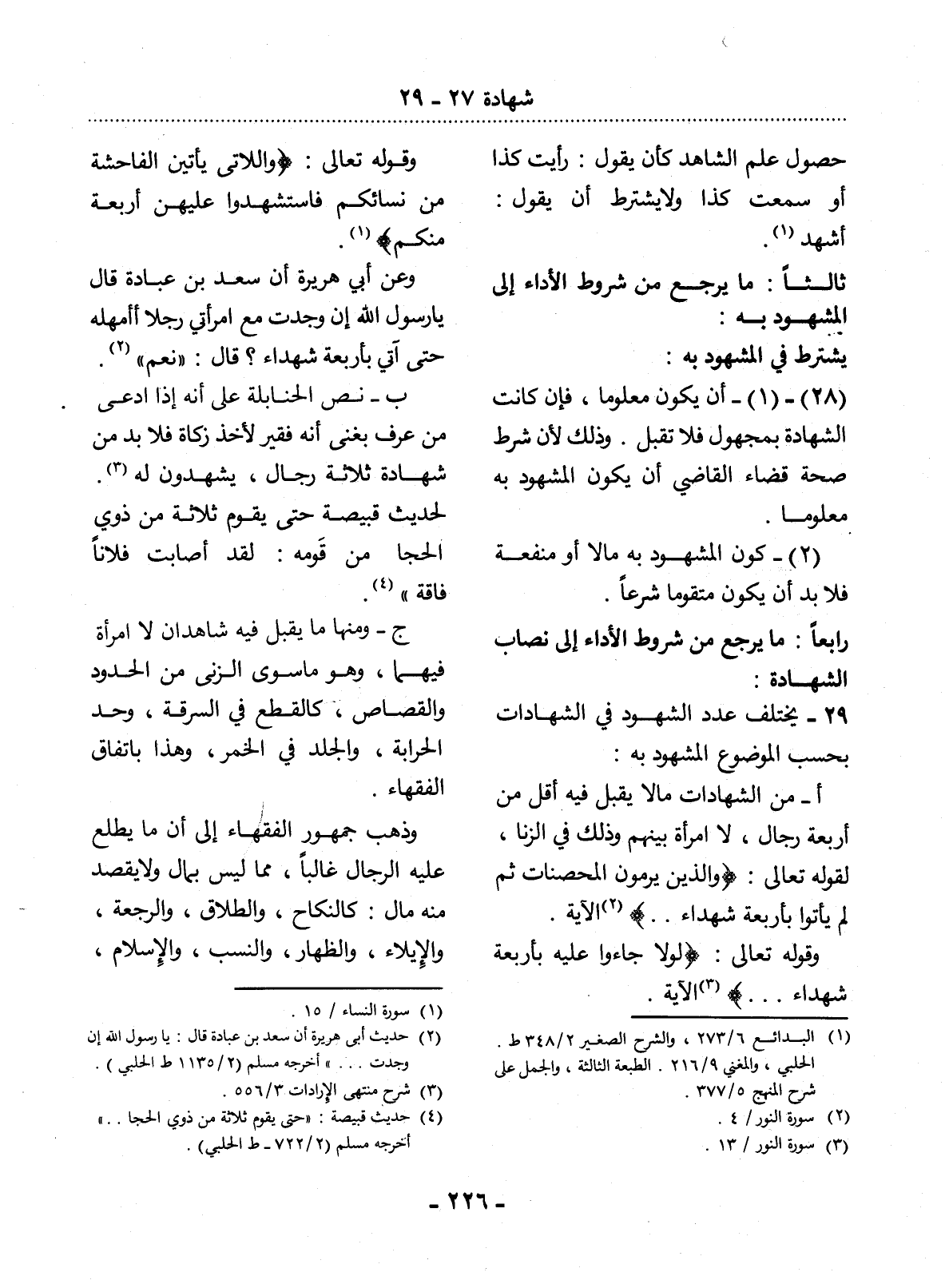 29 - يَخْتَلِفُ عَدَدُ الشُّهُودِ فِي الشَّهَادَاتِ بِحَسَبِ الْمَوْضُوعِ الْمَشْهُودِ بِهِ: