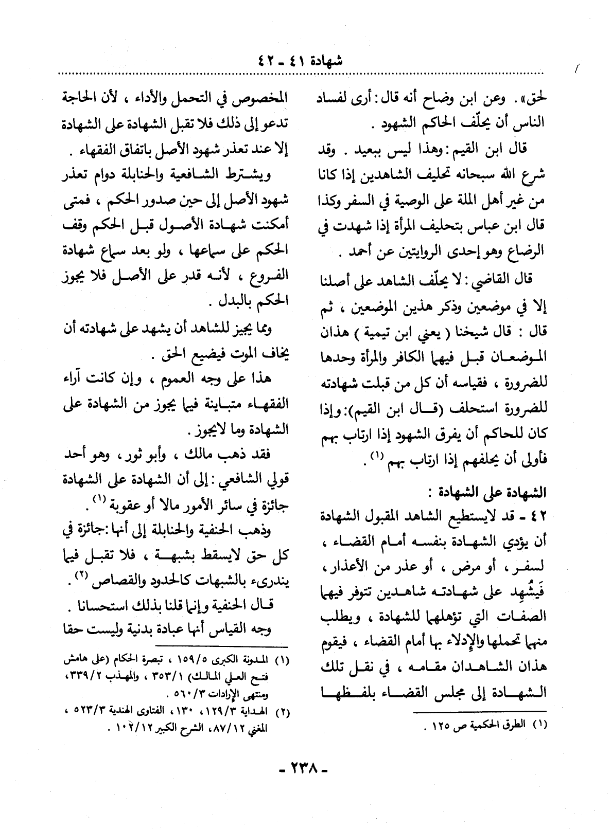 (1) المدونة الكبرى 5 / 159، تبصرة الحكام (على هامش فتح العلي المالك) 1 / 353، والمهذب 2 / 339، ومنتهى الإرادات 3 / 560.