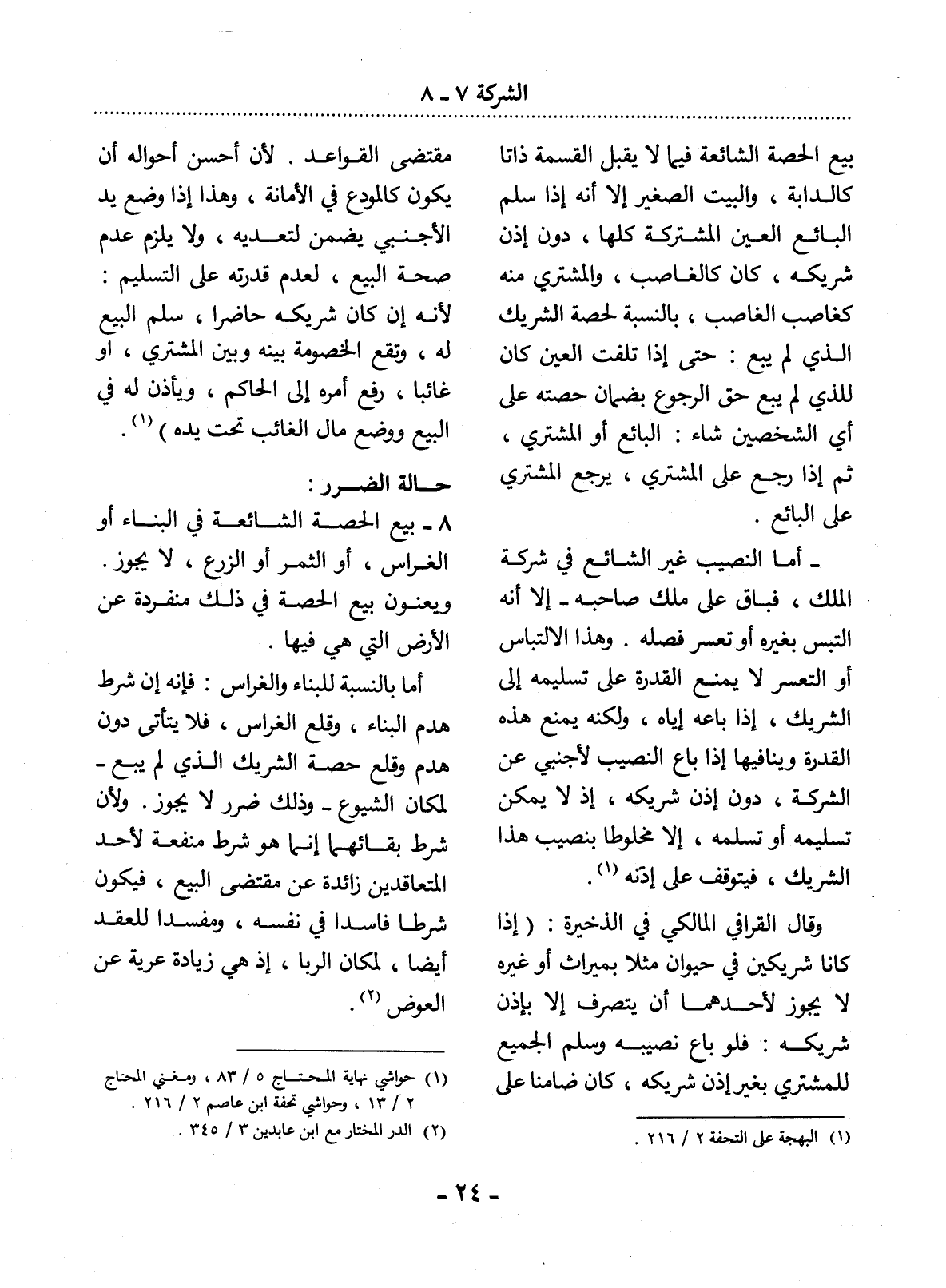 8 - بَيْعُ الْحِصَّةِ الشَّائِعَةِ فِي الْبِنَاءِ أَوِ الْغِرَاسِ، أَوِ الثَّمَرِ أَوِ الزَّرْعِ، لاَ يَجُوزُ. وَيَعْنُونَ بَيْعَ الْحِصَّةِ فِي ذَلِكَ مُنْفَرِدَةً عَنِ الأَْرْضِ الَّتِي هِيَ فِيهَا.