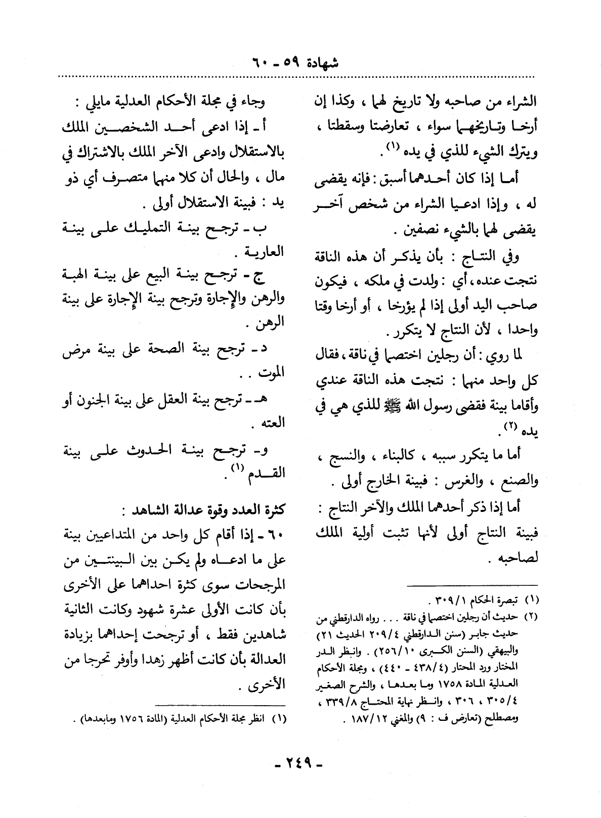 (2) حديث أن رجلين اختصما في ناقة. . . رواه الدارقطني من حديث جابر (سنن الدارقطني 4 / 209 الحديث 21) ، والبيهقي (السنن الكبرى 10 / 256) ، وانظر الدر المختار ورد المحتار (4 / 438 ـ 440) ، ومجلة الأحكام العدلية المادة 1758، وانظر نهاية المحتاج 8 / 339، ومصطلح (تعارض ف: 9) ، والمغني 12 / 187