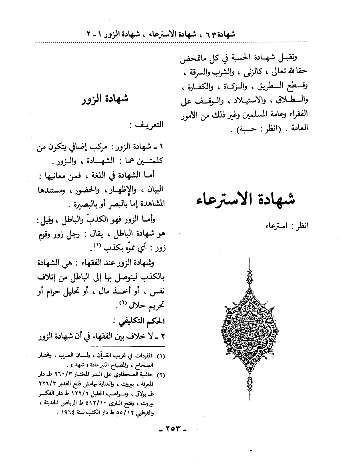 (1) المفردات في غريب القرآن، ولسان العرب، ومختار الصحاح، والمصباح المنير مادة " شهد ".