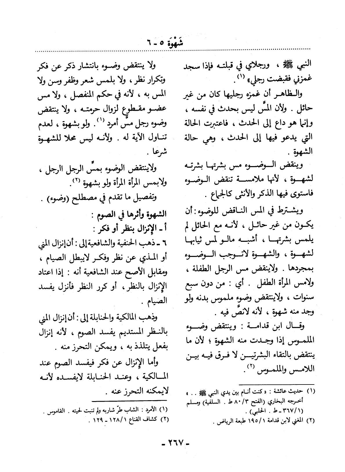 وَلاَ يُنْتَقَضُ الْوُضُوءُ بِمَسِّ الرَّجُل الرَّجُل، وَلاَ بِمَسِّ الْمَرْأَةِ الْمَرْأَةَ وَلَوْ بِشَهْوَةٍ (2) .