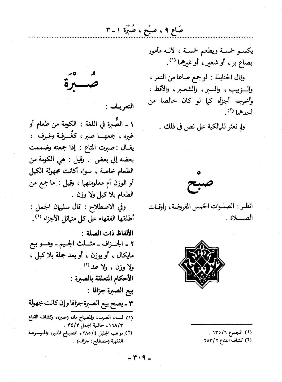 (1) لسان العرب، والمصباح مادة (صبر) ، وكشاف القناع 3 / 168، حاشية الجمل 3 / 34.