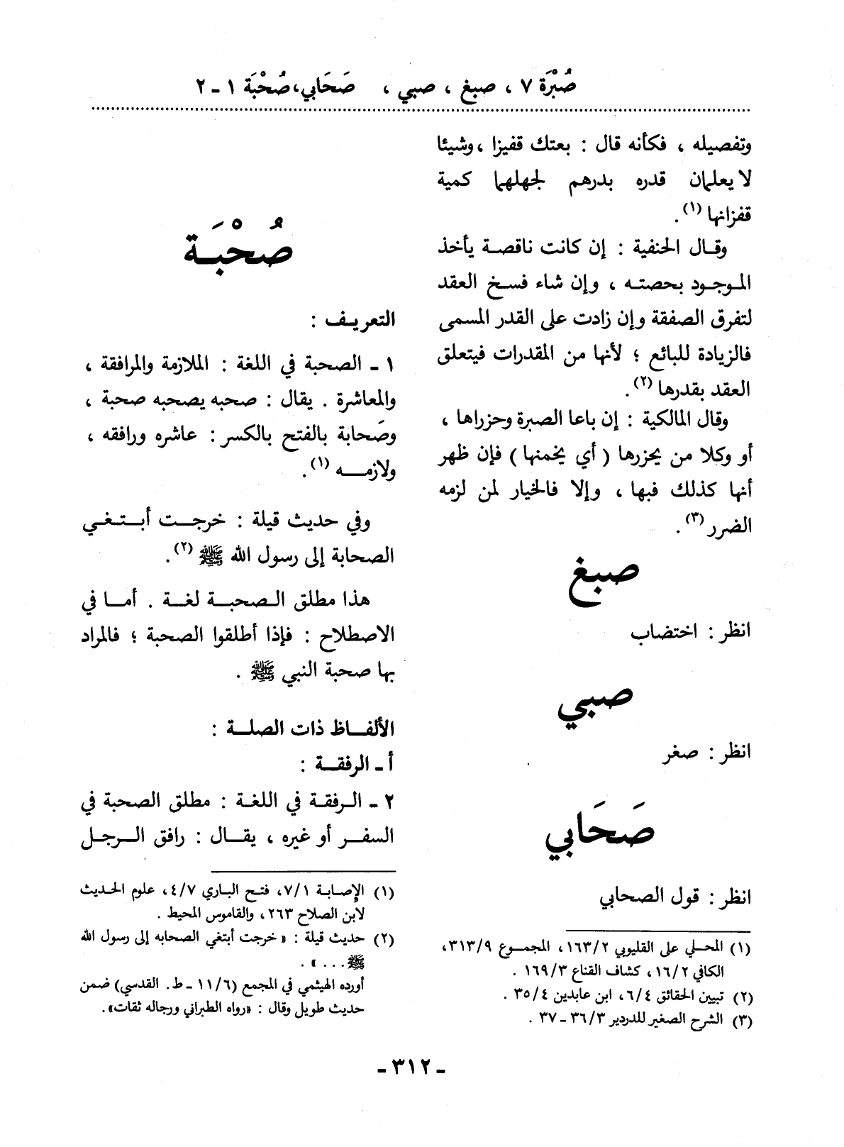 (1) الإصابة 1 / 7، فتح الباري 7 / 4، علوم الحديث لابن الصلاح 263، والقاموس المحيط.