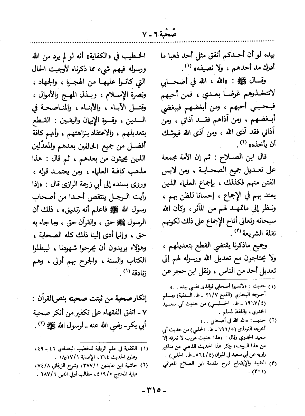 (1) الكفاية في علم الرواية للخطيب البغدادي 46 - 49، وعلوم الحديث 264، الإصابة 1 / 17 و 18.