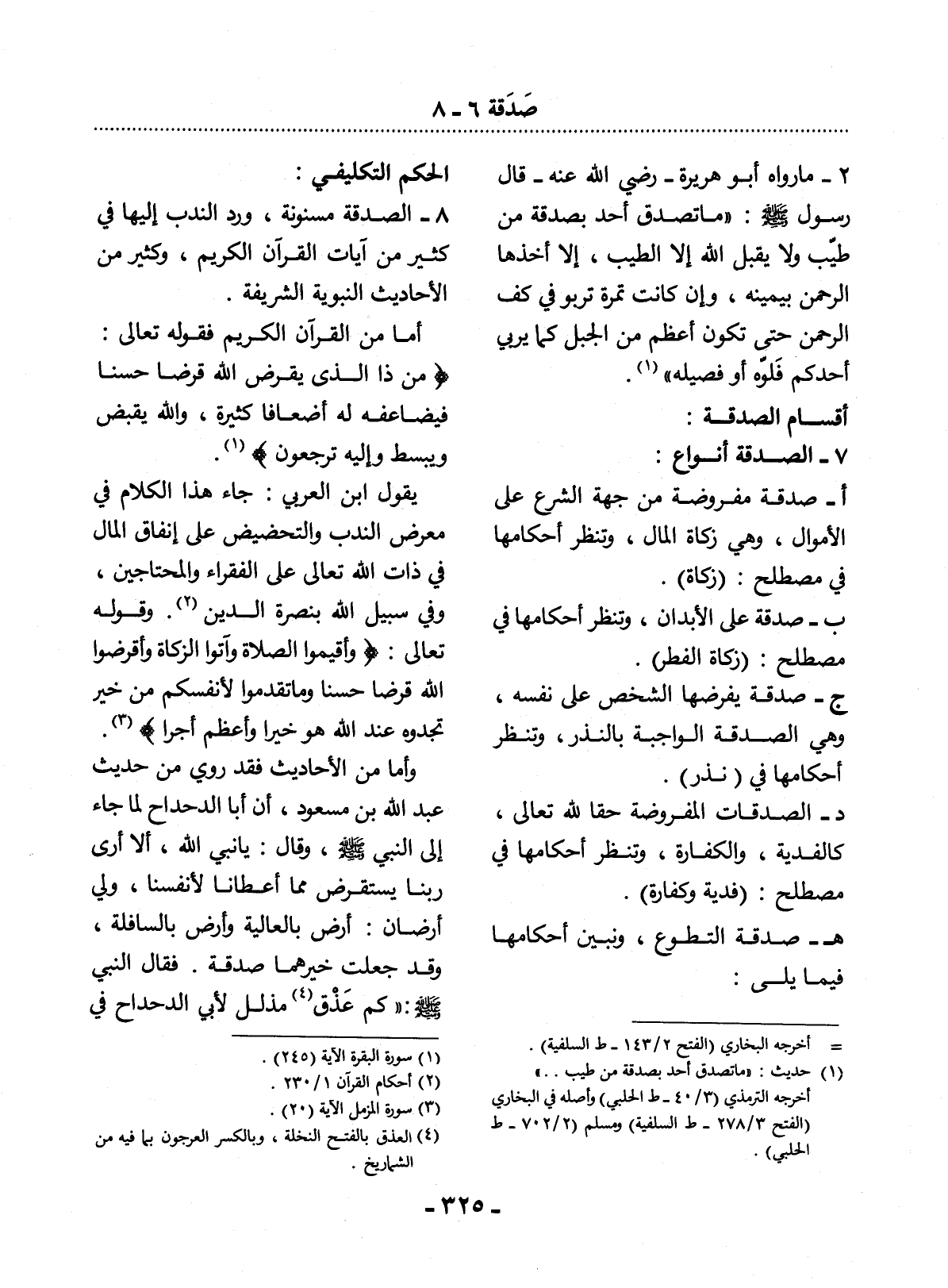 (1) حديث: " ما تصدق أحد بصدقة من طيب. . . " أخرجه الترمذي (3 / 40 - ط الحلبي) وأصله في البخاري (الفتح 3 / 278 - ط السلفية) ومسلم (2 / 702 - ط الحلبي) .
