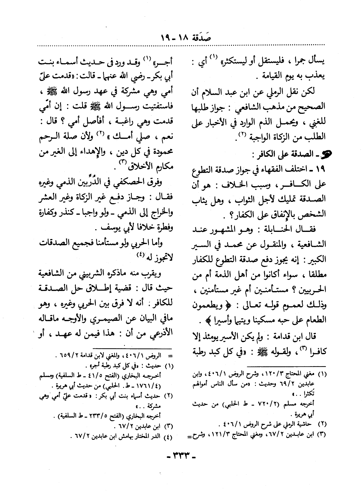 (1) مغني المحتاج 3 / 120، وشرح الروض 1 / 406، وابن عابدين 2 / 69 وحديث: " من سأل الناس أموالهم تكثرا. . . " أخرجه مسلم (2 / 720 - ط الحلبي) من حديث أبي هريرة