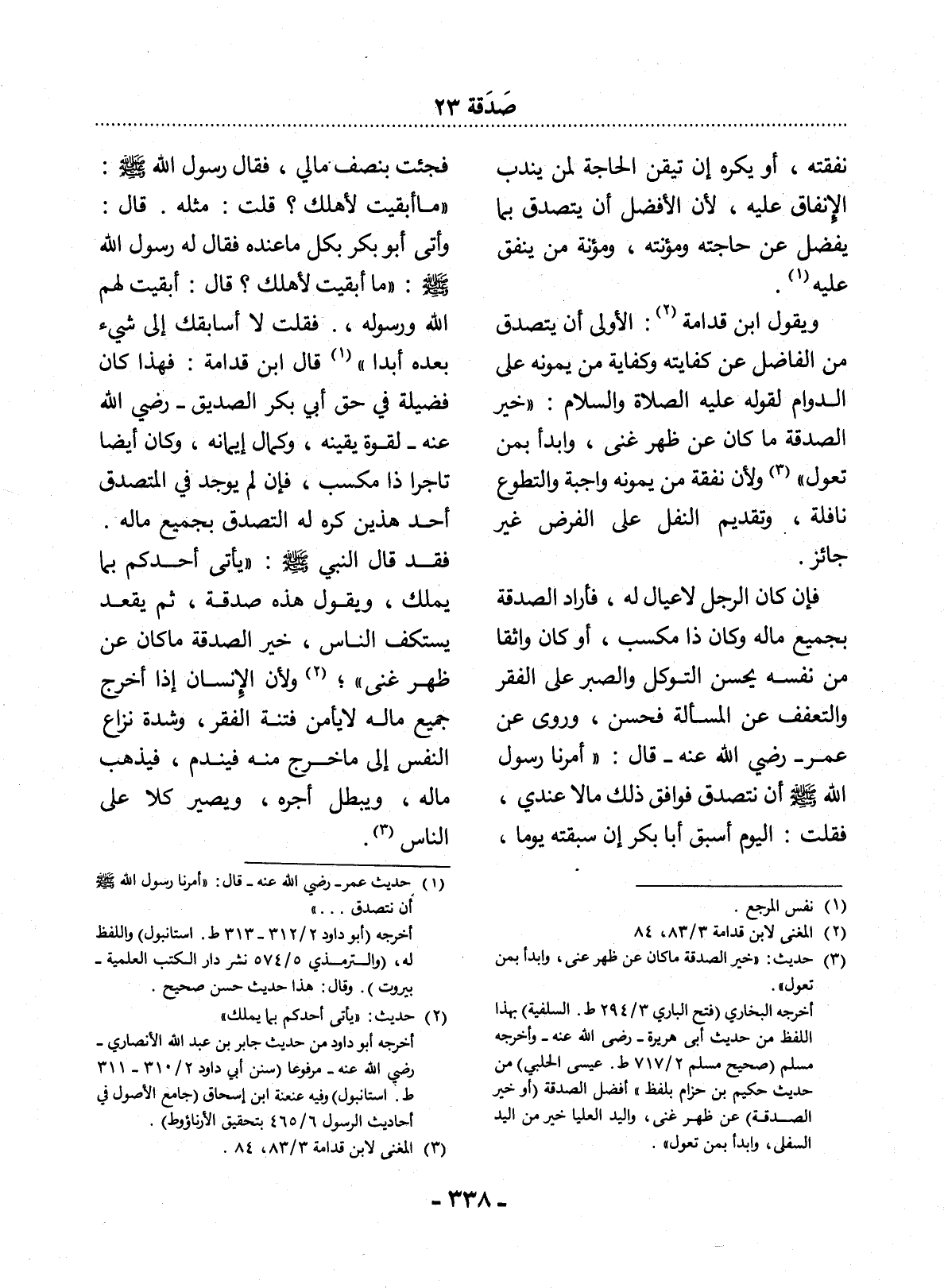 (1) حديث عمر - رضي الله عنه - قال: " أمرنا رسول الله صلى الله عليه وسلم أن نتصدق. . . " أخرجه (أبو داود 2 / 312 - 313 ط. استانبول) واللفظ له، (والترمذي 5 / 574 نشر دار الكتب العلمية - بيروت) . وقال: هذا حديث حسن صحيح.