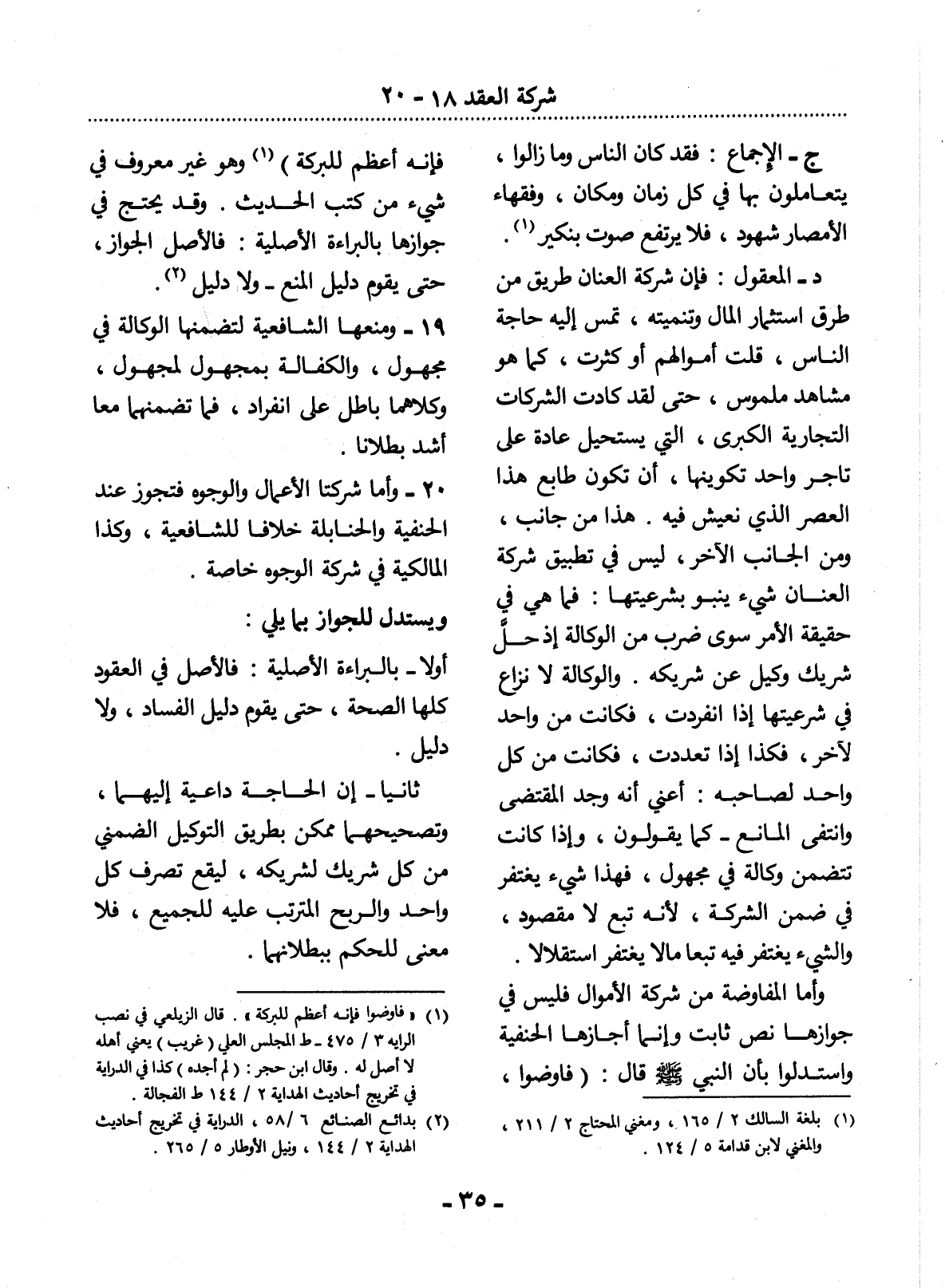 وَأَمَّا الْمُفَاوَضَةُ مِنْ شَرِكَةِ الأَْمْوَال فَلَيْسَ فِي جَوَازِهَا نَصٌّ ثَابِتٌ وَإِنَّمَا أَجَازَهَا الْحَنَفِيَّةُ وَاسْتَدَلُّوا بِأَنَّ النَّبِيَّ صَلَّى اللَّهُ عَلَيْهِ وَسَلَّمَ قَال: فَاوِضُوا،