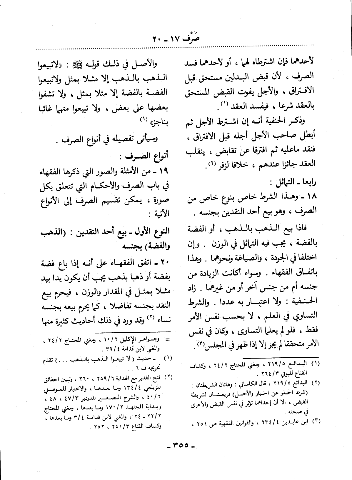 18 - وَهَذَا الشَّرْطُ خَاصٌّ بِنَوْعٍ خَاصٍّ مِنَ الصَّرْفِ، وَهُوَ بَيْعُ أَحَدِ النَّقْدَيْنِ بِجِنْسِهِ.