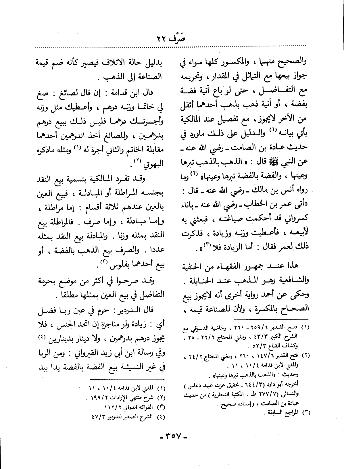 (2) فتح القدير 6 / 147، 260، ومغني المحتاج 2 / 42، والمغني لابن قدامة 4 / 10، 11. وحديث: " الذهب بالذهب تبرها وعينها ". أخرجه أبو داود (3 / 644 - تحقيق عزت عبيد دعاس) والنسائي (7 / 277 ط. المكتبة التجارية) من حديث عبادة بن الصامت، وإسناده صحيح.