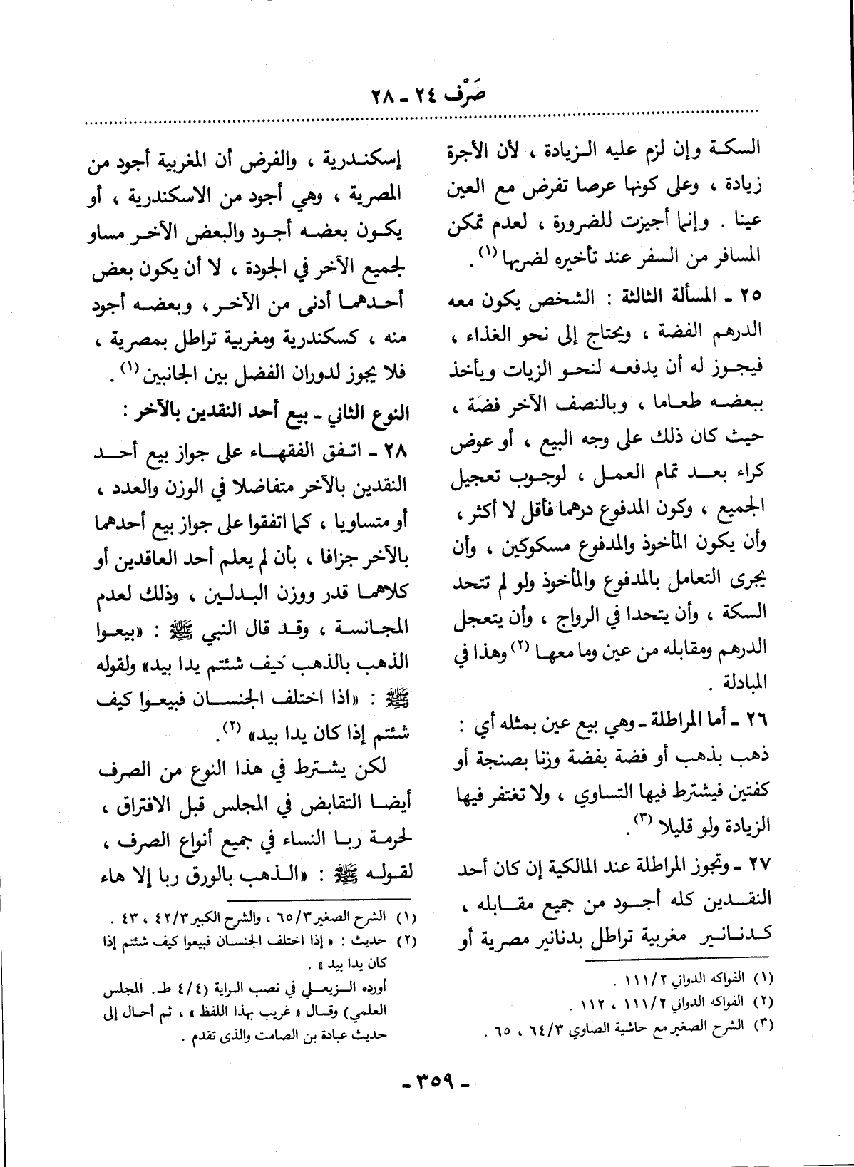 27 - وَتَجُوزُ الْمُرَاطَلَةُ عِنْدَ الْمَالِكِيَّةِ إِنْ كَانَ أَحَدُ النَّقْدَيْنِ كُلُّهُ أَجْوَدَ مِنْ جَمِيعِ مُقَابِلِهِ، كَدَنَانِيرَ مَغْرِبِيَّةٍ تُرَاطَل بِدَنَانِيرَ مِصْرِيَّةٍ أَوْ
