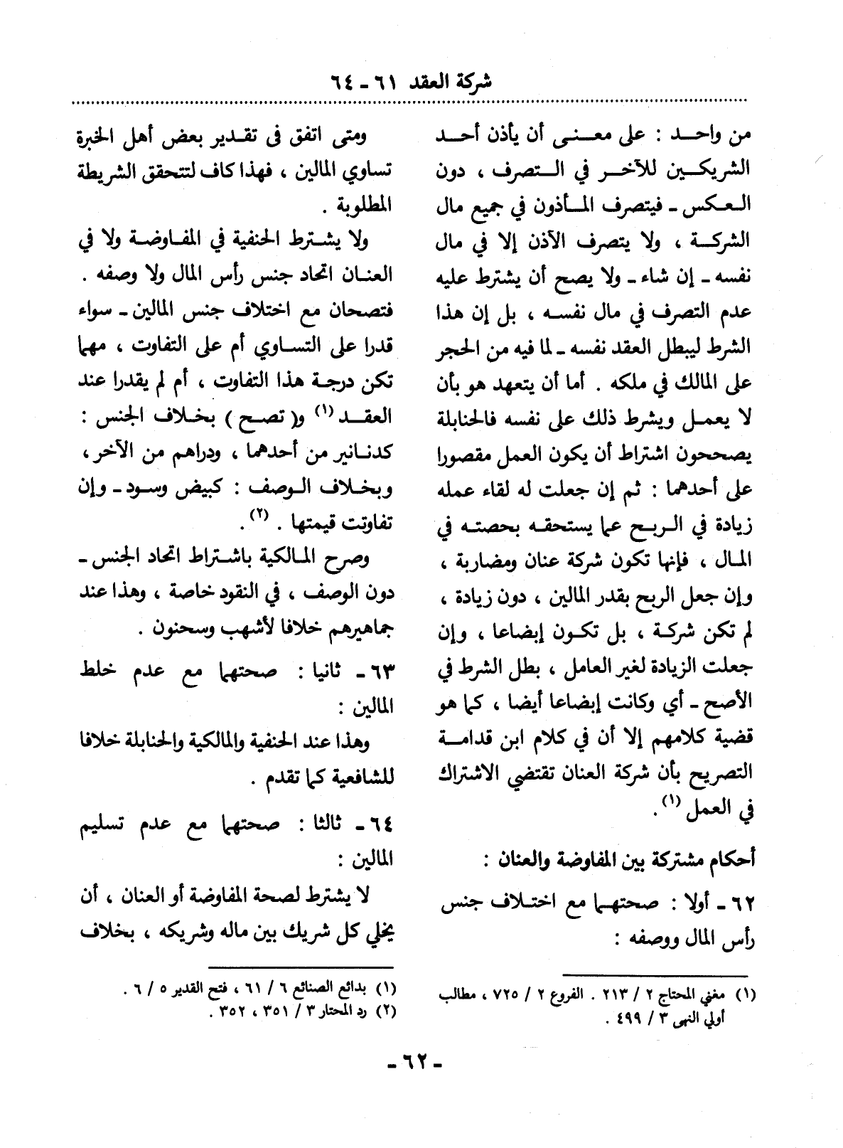 أَحْكَامٌ مُشْتَرَكَةٌ بَيْنَ الْمُفَاوَضَةِ وَالْعَنَانِ: