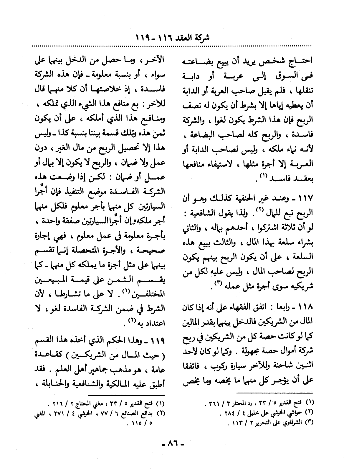102 - وَهَذَا الْحُكْمُ الَّذِي أَخَذَهُ هَذَا الْقِسْمُ (حَيْثُ الْمَال مِنَ الشَّرِيكَيْنِ) كَقَاعِدَةٍ عَامَّةٍ، هُوَ مَذْهَبُ جَمَاهِيرِ أَهْل الْعِلْمِ. فَقَدْ أَطْبَقَ عَلَيْهِ الْمَالِكِيَّةُ وَالشَّافِعِيَّةُ وَالْحَنَابِلَةُ،