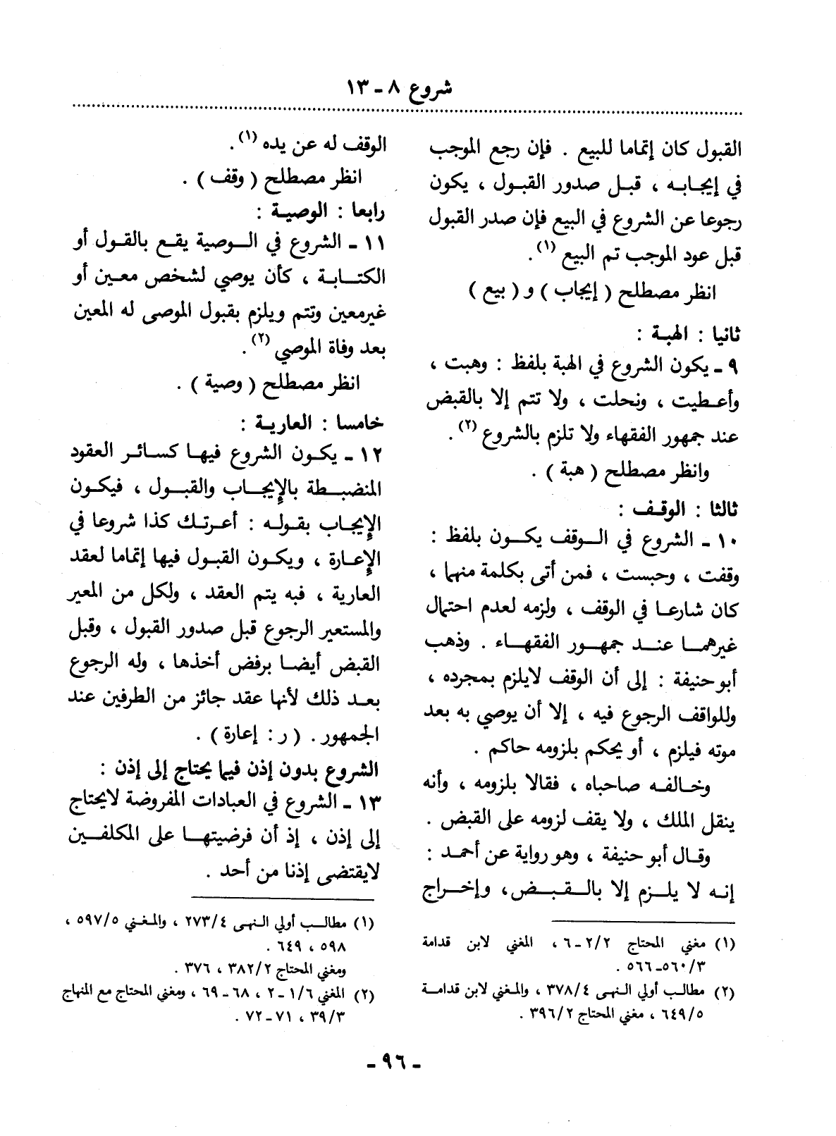 (1) مطالب أولي النهى 4 / 273، والمغني 5 / 597، 598، 649. ومغني المحتاج 2 / 382، 376.
