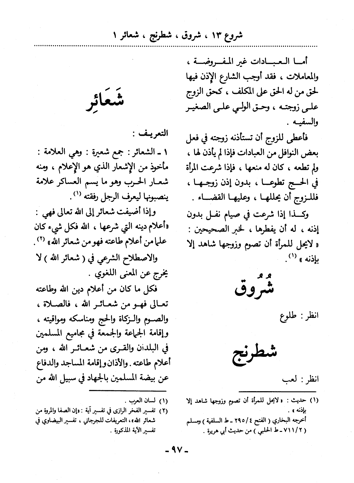 (2) تفسير الفخر الرازي في تفسير آية: " إن الصفا والمروة من شعائر الله "، التعريفات للجرجاني، تفسير البيضاوي في تفسير الآية المذكورة.
