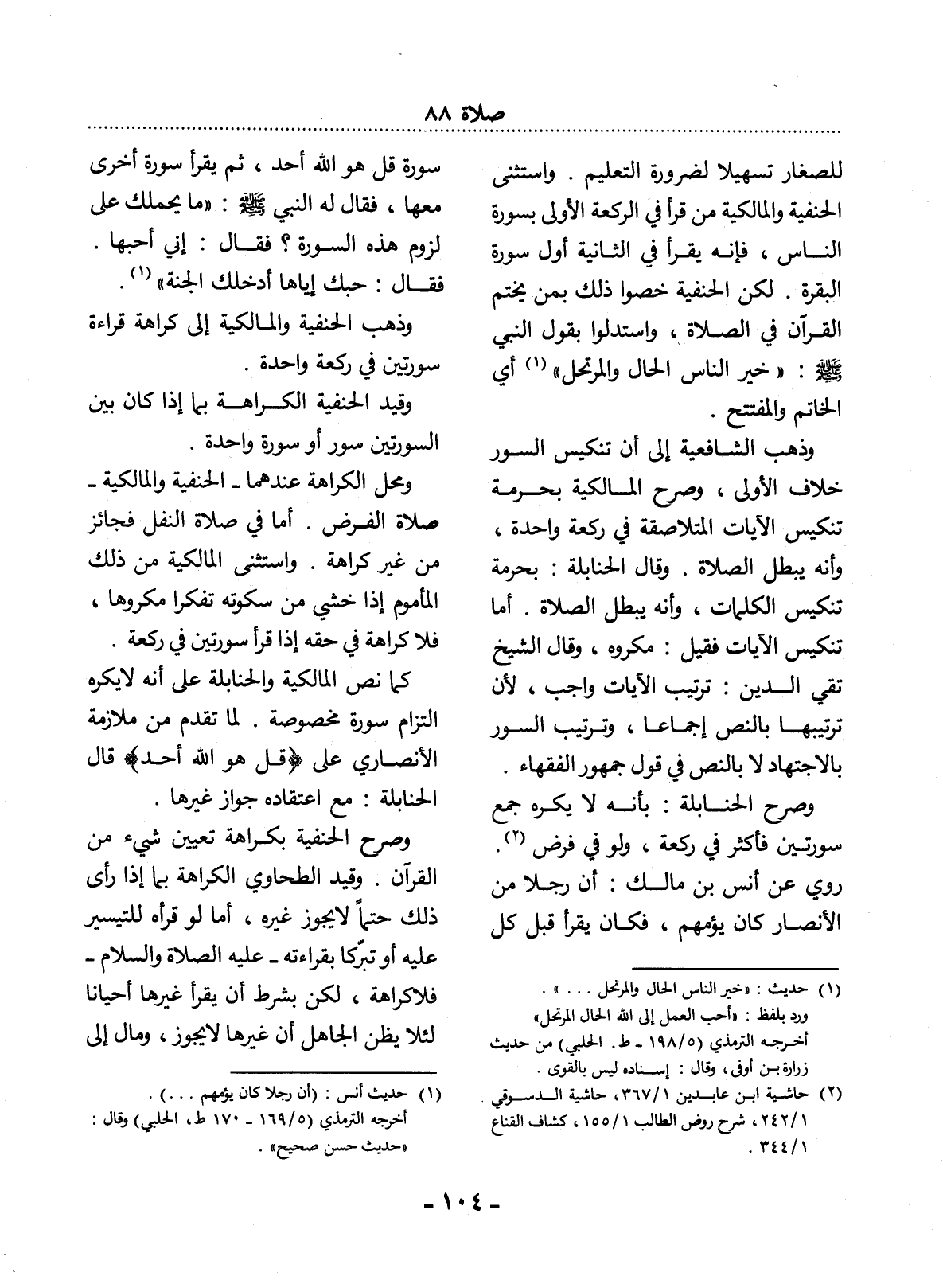 وَذَهَبَ الْحَنَفِيَّةُ وَالْمَالِكِيَّةُ إِلَى كَرَاهَةِ قِرَاءَةِ سُورَتَيْنِ فِي رَكْعَةِ وَاحِدَةٍ.