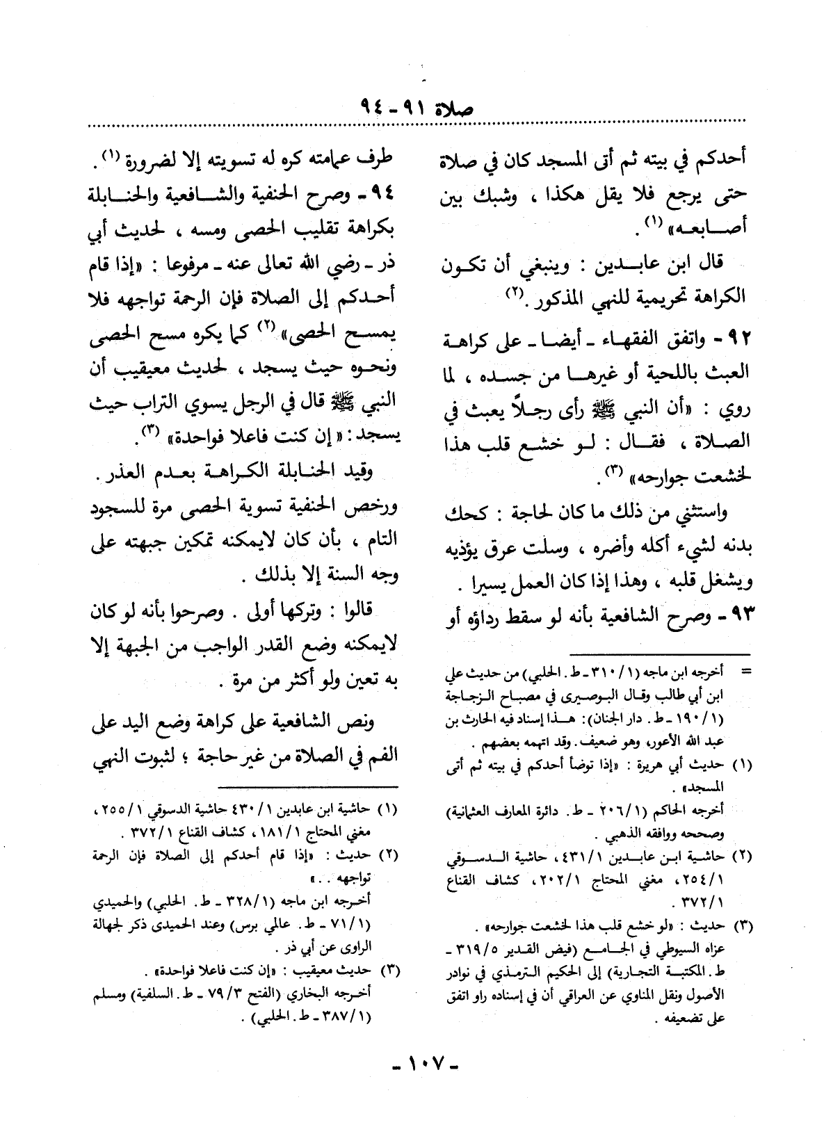 (2) حاشية ابن عابدين 1 / 431، حاشية الدسوقي 1 / 254، مغني المحتاج 1 / 202، كشاف القناع 1 / 372.
