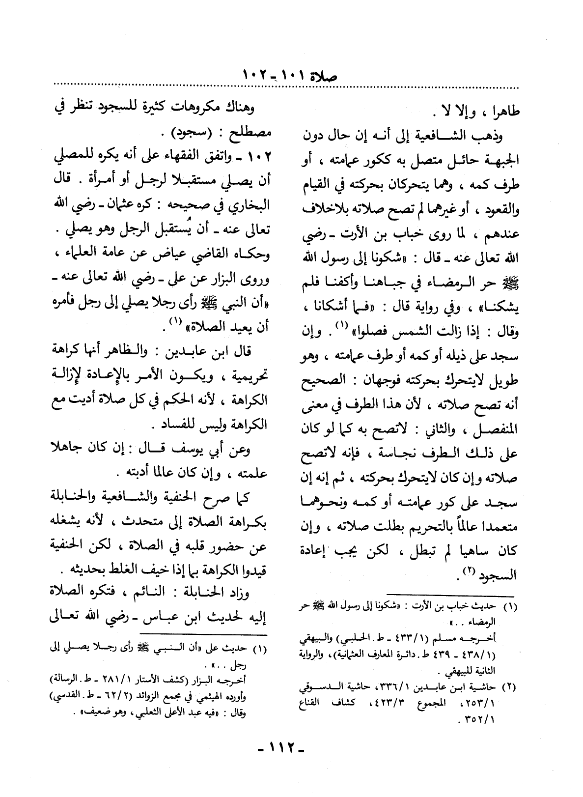 (1) حديث خباب بن الأرت: " شكونا إلى رسول الله صلى الله عليه وسلم حر الرمضاء. . . . ". أخرجه مسلم (1 / 433 - ط. الحلبي) ، والبيهقي (1 / 438 - 439 ط. دائرة المعارف العثمانية) ، والرواية الثانية للبيهقي.