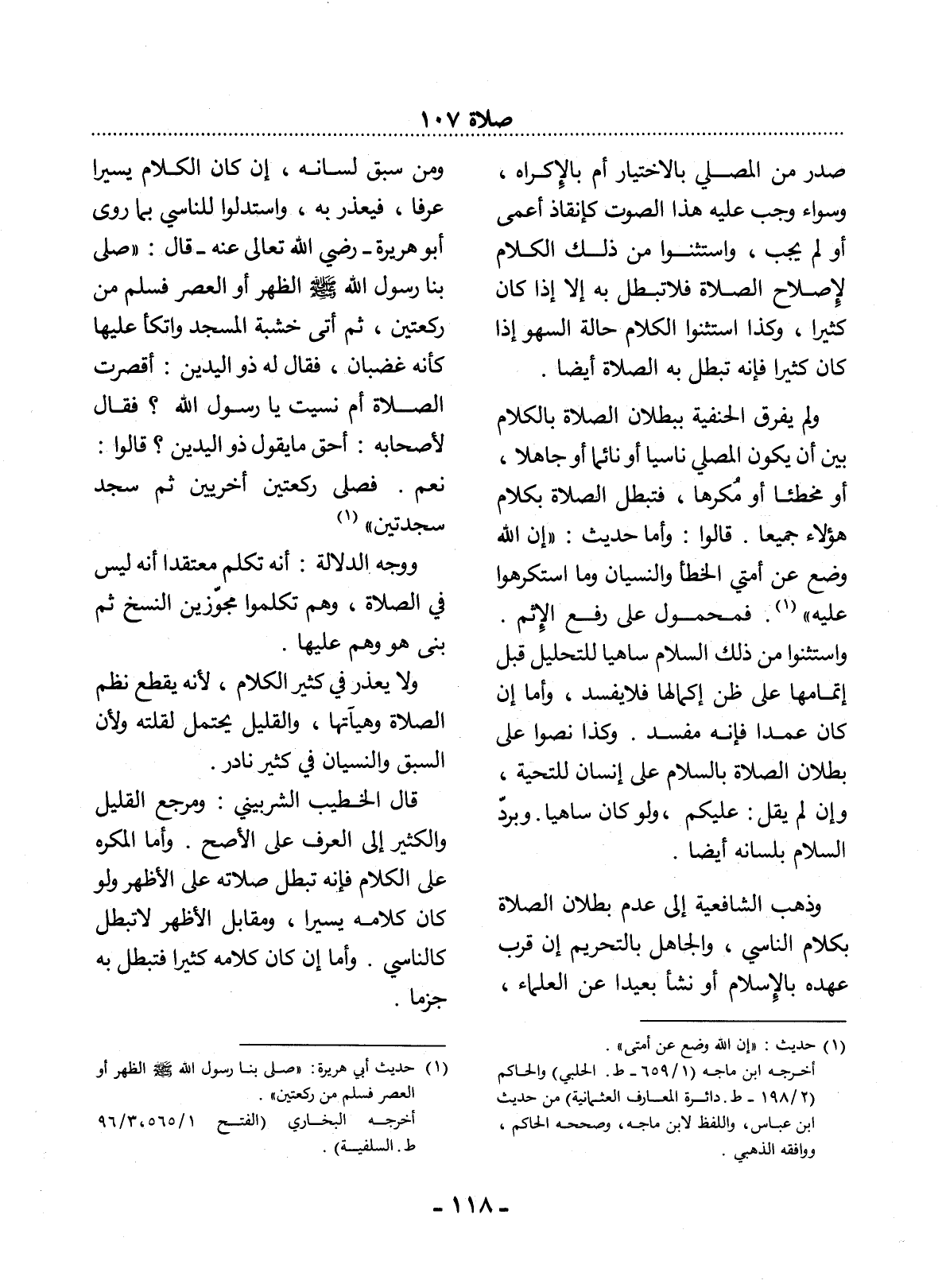 (1) حديث أبي هريرة: " صلى بنا رسول الله صلى الله عليه وسلم الظهر أو العصر فسلم من ركعتين ". أخرجه البخاري (الفتح 1 / 565، 3 / 96 ط. السلفية) .