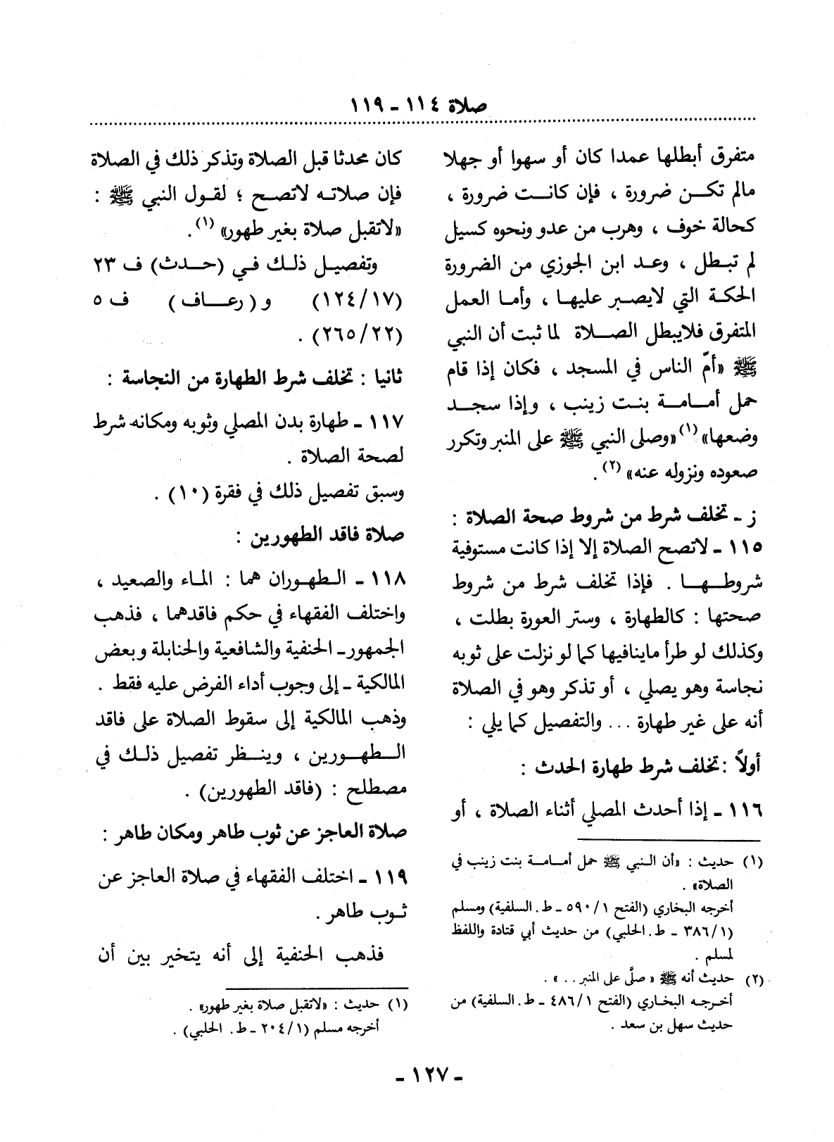 117 - طَهَارَةُ بَدَنِ الْمُصَلِّي وَثَوْبِهِ وَمَكَانِهِ شَرْطٌ لِصِحَّةِ الصَّلاَةِ.