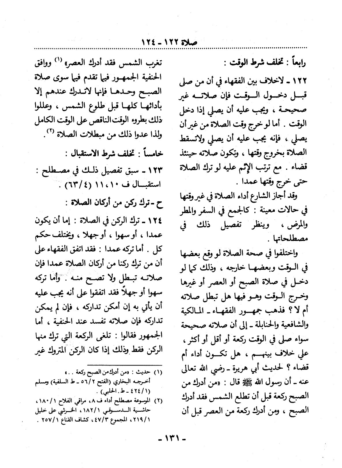(2) الموسوعة مصطلح أداء ف 8، مراقي الفلاح 1 / 180، حاشية الدسوقي 1 / 182، الخرشي على خليل 1 / 219، المجموع 3 / 47، كشاف القناع 1 / 257.