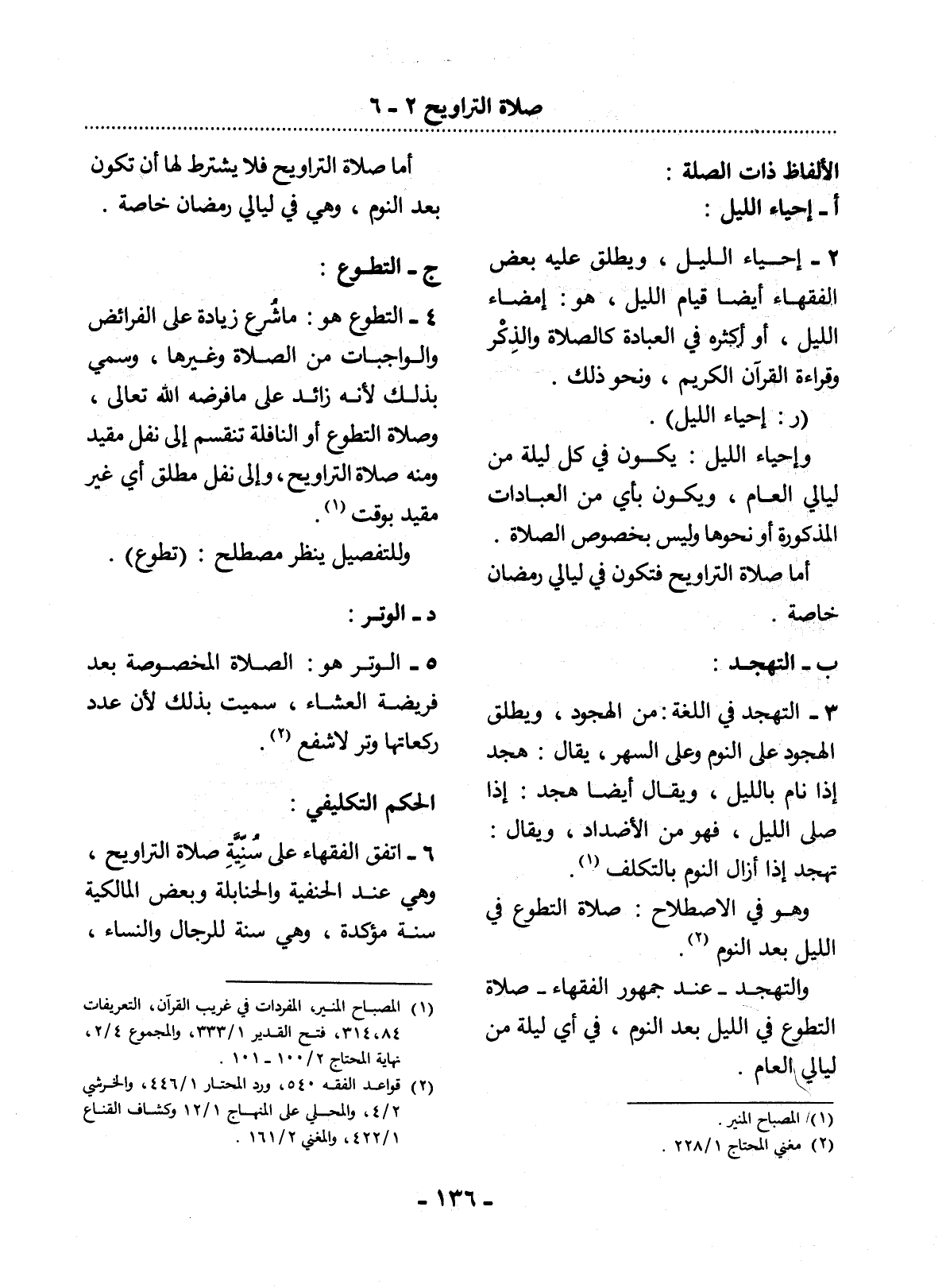 (1) المصباح المنير، المفردات في غريب القرآن، التعريفات 84، 314، فتح القدير 1 / 333، والمجموع 4 / 2، نهاية المحتاج 2 / 100 - 101.