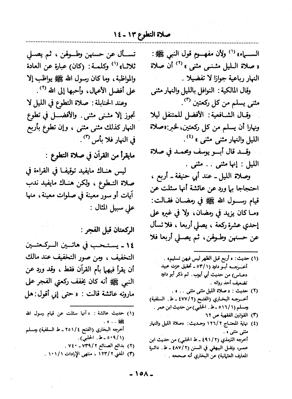 (4) نهاية المحتاج 2 / 126 وحديث: " صلاة الليل والنهار مثنى مثنى ". أخرجه الترمذي (2 / 491 - ط. الحلبي) من حديث ابن عمر، ونقل البيهقي في السنن (2 / 487 - ط. دائرة المعارف العثمانية) عن البخاري أنه صححه.