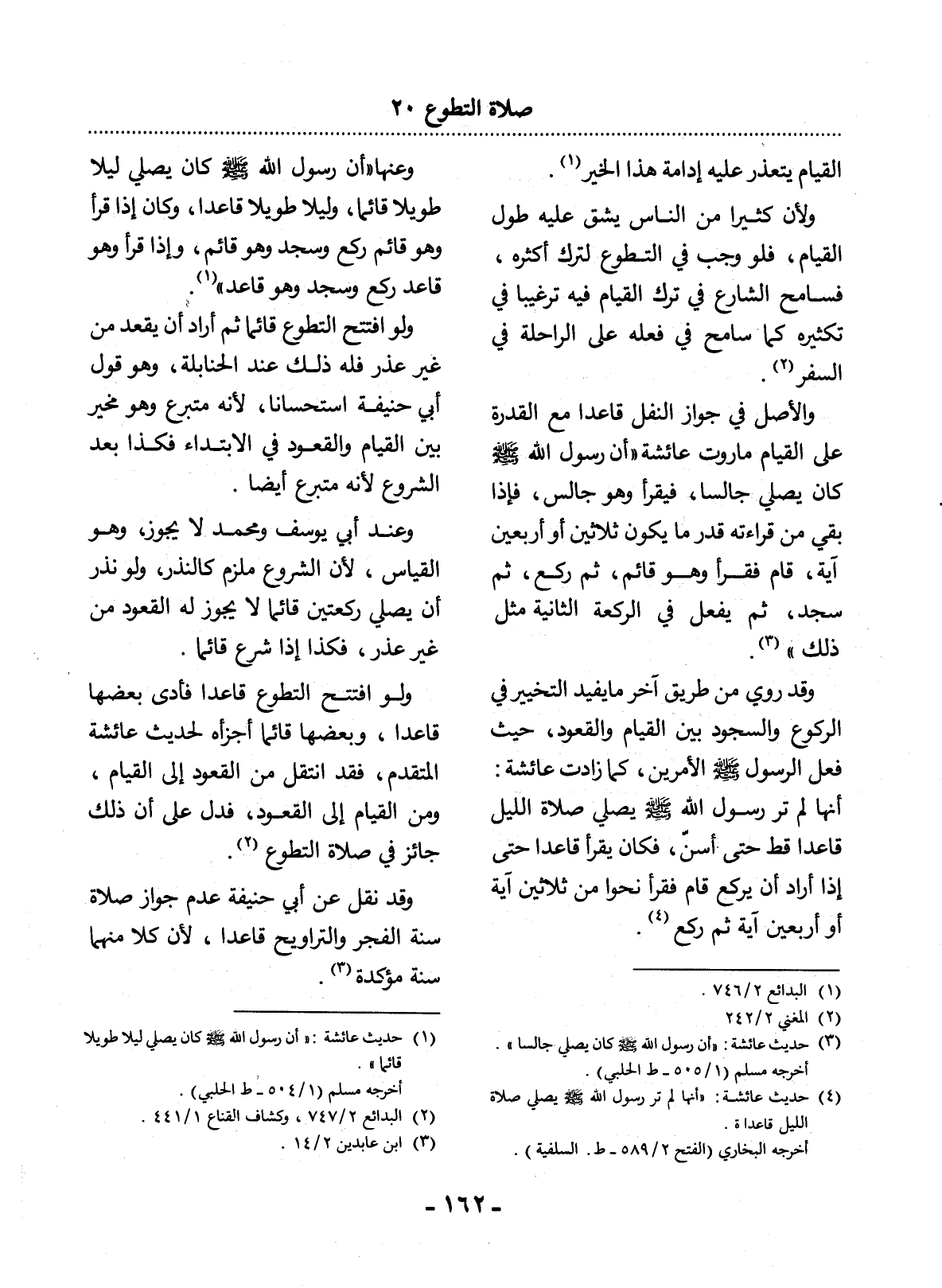 (1) حديث عائشة: " أن رسول الله صلى الله عليه وسلم كان يصلى ليلا طويلا قائما ". أخرجه مسلم 1 / 504 - ط. الحلبي) .