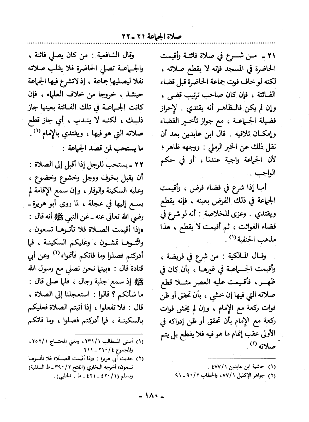 (2) حديث أبي هريرة: " إذا أقيمت الصلاة فلا تأتوها تسعون ". أخرجه البخاري (الفتح 2 / 390 - ط السلفية) ومسلم (1 / 420 - 421 ط. الحلبي) .