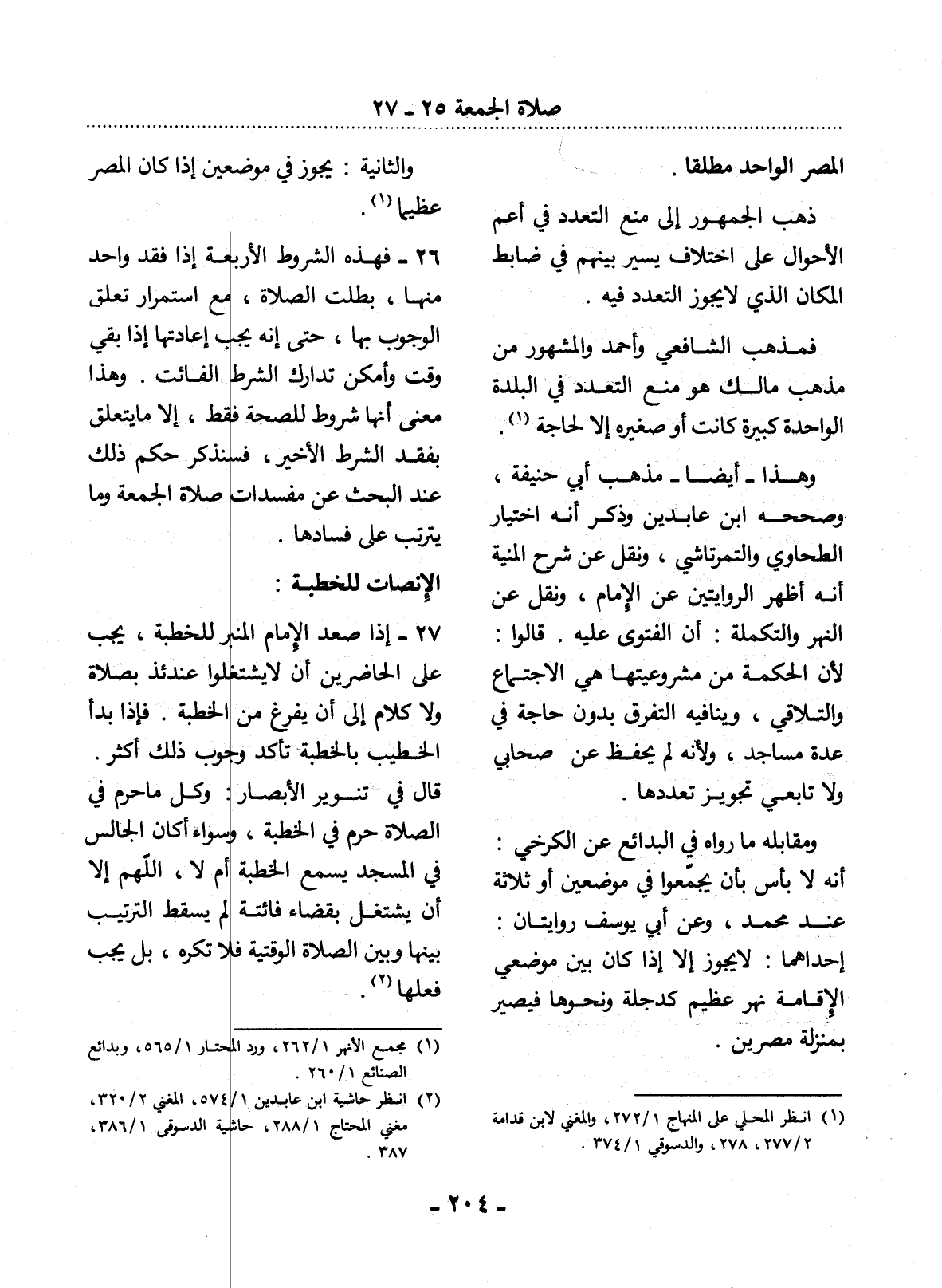 (2) انظر حاشية ابن عابدين 1 / 574، المغني 2 / 320، مغني المحتاج 1 / 288، حاشية الدسوقي 1 / 386، 387.