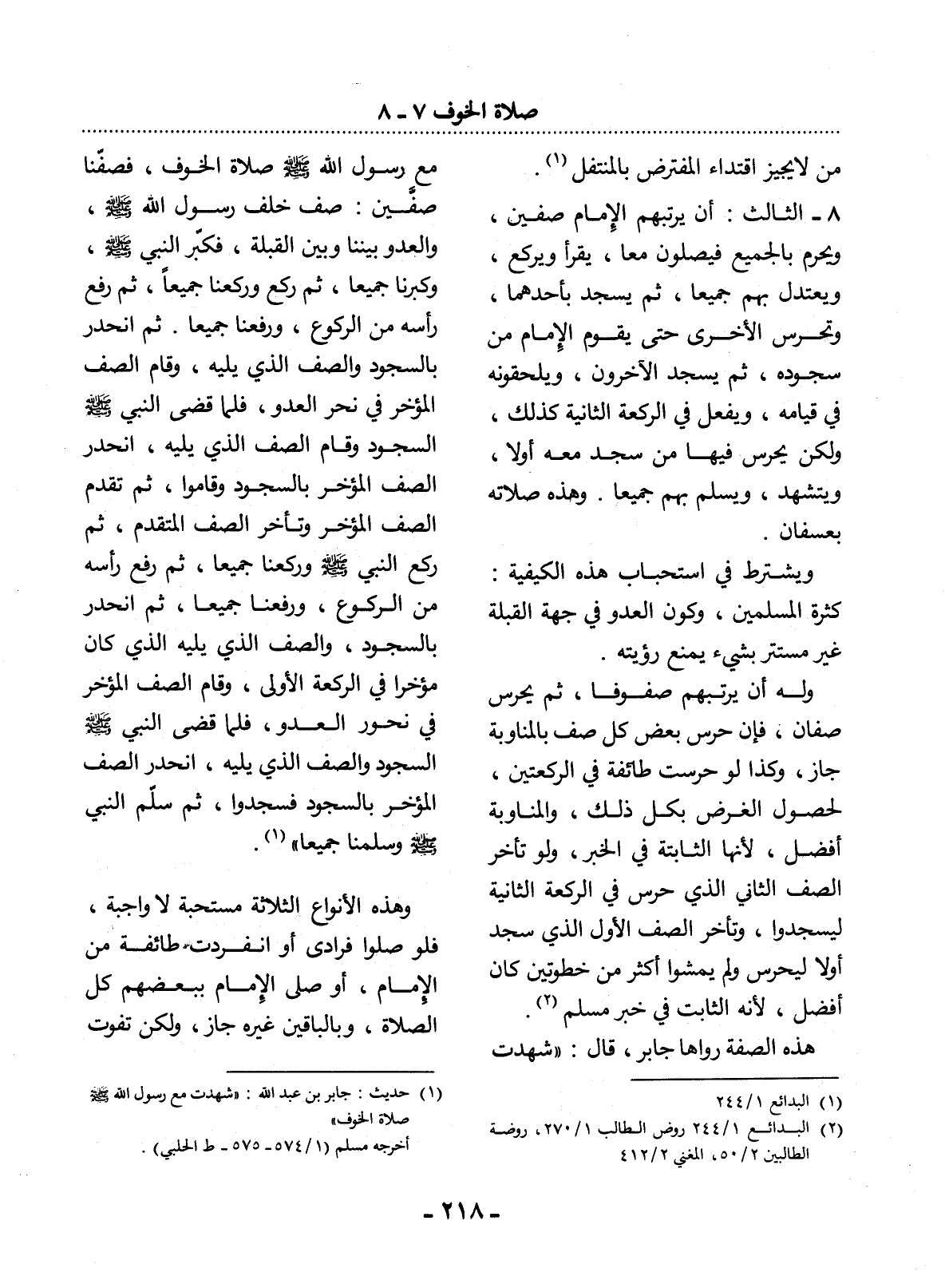 (1) حديث: جابر بن عبد الله: " شهدت مع رسول الله صلى الله عليه وسلم صلاة الخوف ". أخرجه مسلم (1 / 574 - 575 - ط الحلبي) .