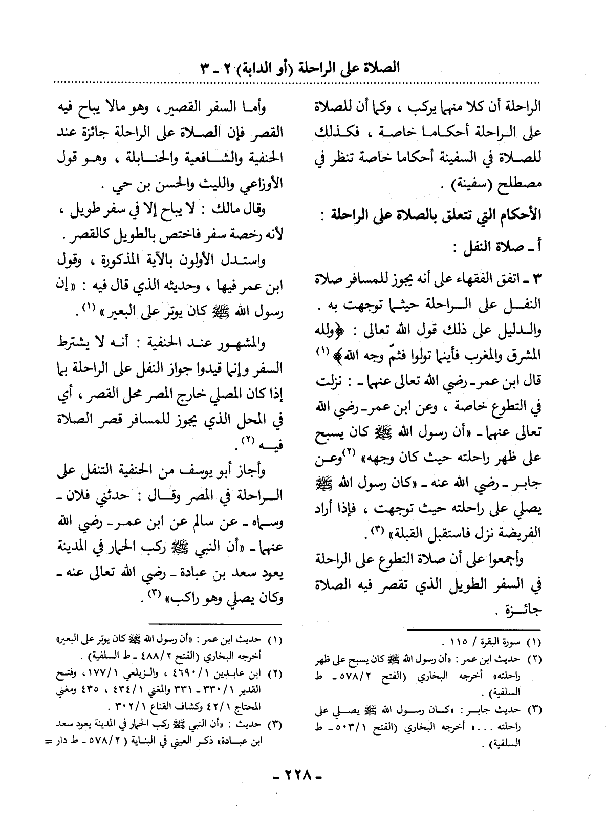 (2) حديث ابن عمر: " أن رسول الله صلى الله عليه وسلم كان يسبح على ظهر راحلته ". أخرجه البخاري (الفتح2 / 578 - ط السلفية) .