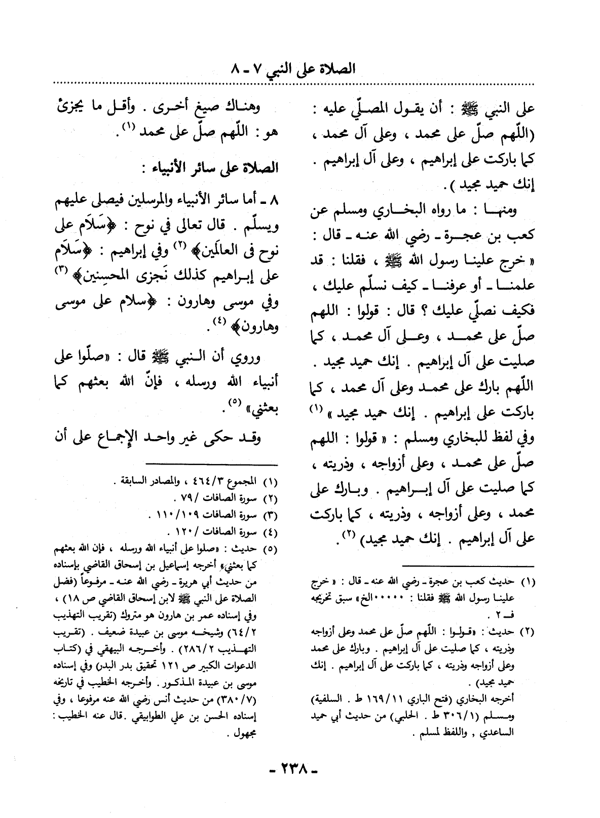 (2) حديث: قولوا: اللهم صل على محمد وعلى أزواجه وذريته، كما صليت على آل إبراهيم، وبارك على محمد وعلى أزواجه وذريته، كما باركت على آل إبراهيم، إنك حميد مجيد ". أخرجه البخاري (فتح الباري 11 / 169، ط السلفية) ومسلم (1 / 306 ط الحلبي) من حديث أبي حميد الساعدي، واللفظ لمسلم.