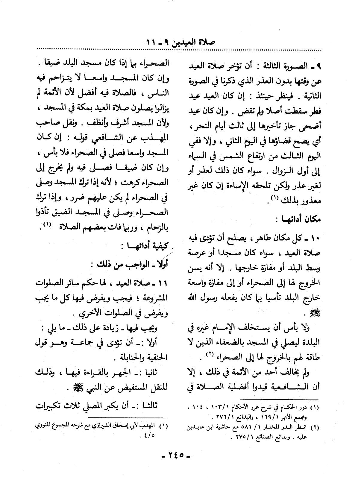 (2) انظر الدر المختار 1 / 581، مع حاشية ابن عابدين عليه. وبدائع الصنائع 1 / 275.