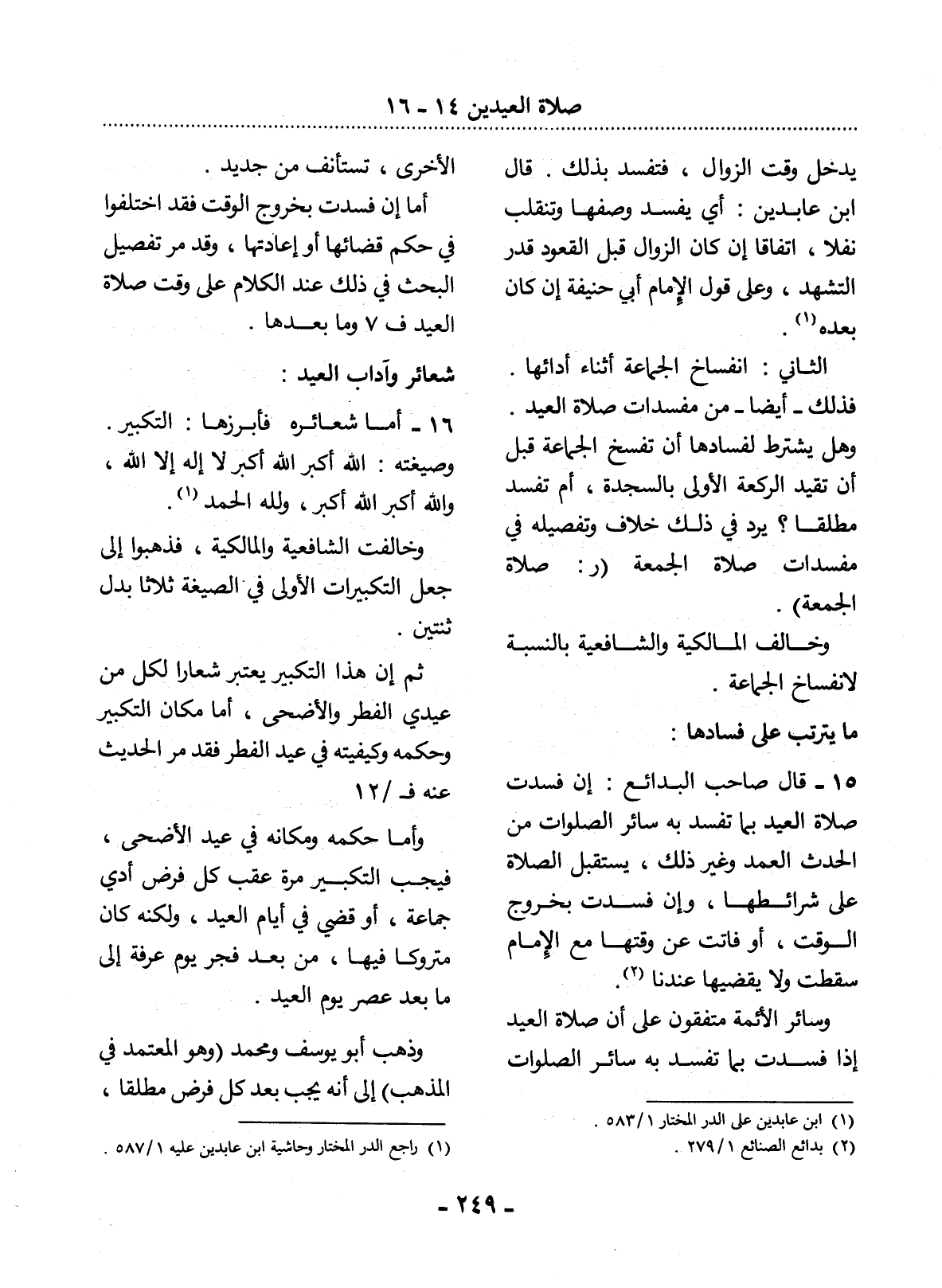 (1) راجع الدر المختار وحاشية ابن عابدين عليه 1 / 587
