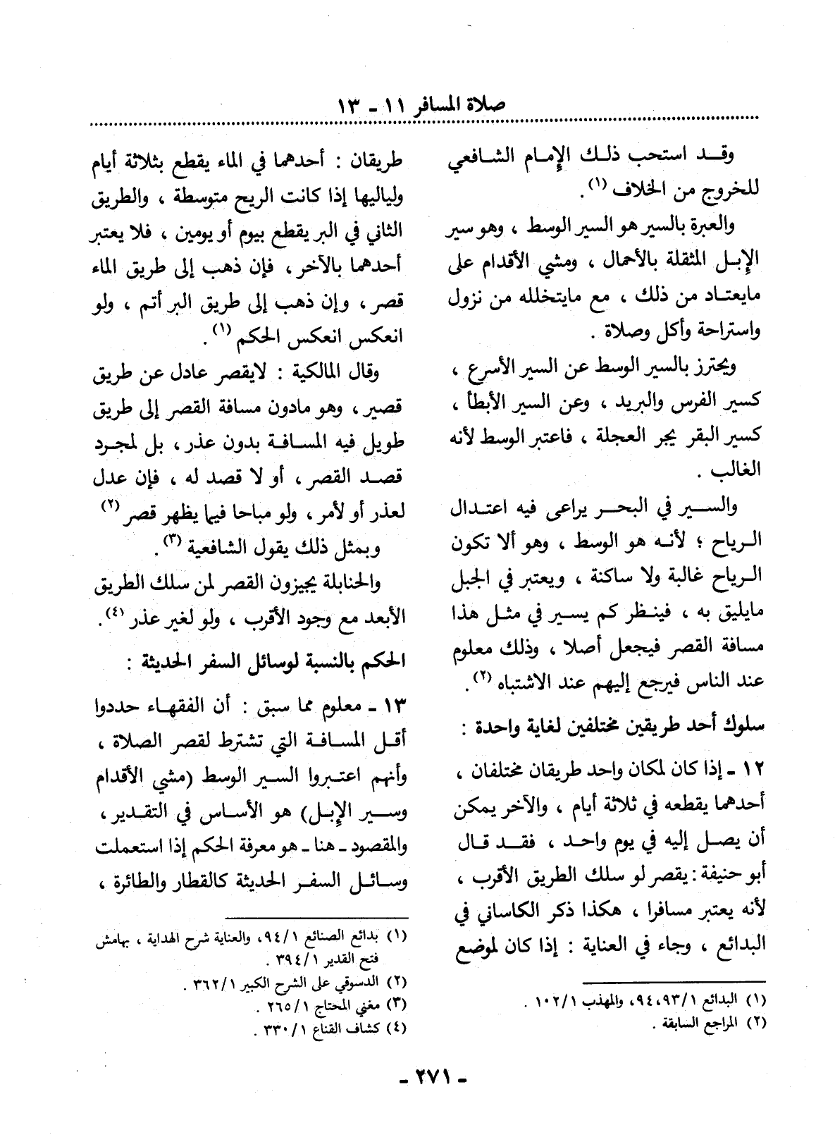 13 - مَعْلُومٌ مِمَّا سَبَقَ: أَنَّ الْفُقَهَاءَ حَدَّدُوا أَقَل الْمَسَافَةِ الَّتِي تُشْتَرَطُ لِقَصْرِ الصَّلاَةِ، وَأَنَّهُمُ اعْتَبَرُوا السَّيْرَ الْوَسَطَ (مَشْيَ الأَْقْدَامِ وَسَيْرَ الإِْبِل) هُوَ الأَْسَاسُ فِي التَّقْدِيرِ، وَالْمَقْصُودُ - هُنَا - هُوَ مَعْرِفَةُ الْحُكْمِ إِذَا اسْتُعْمِلَتْ وَسَائِل السَّفَرِ الْحَدِيثَةِ كَالْقِطَارِ وَالطَّائِرَةِ،