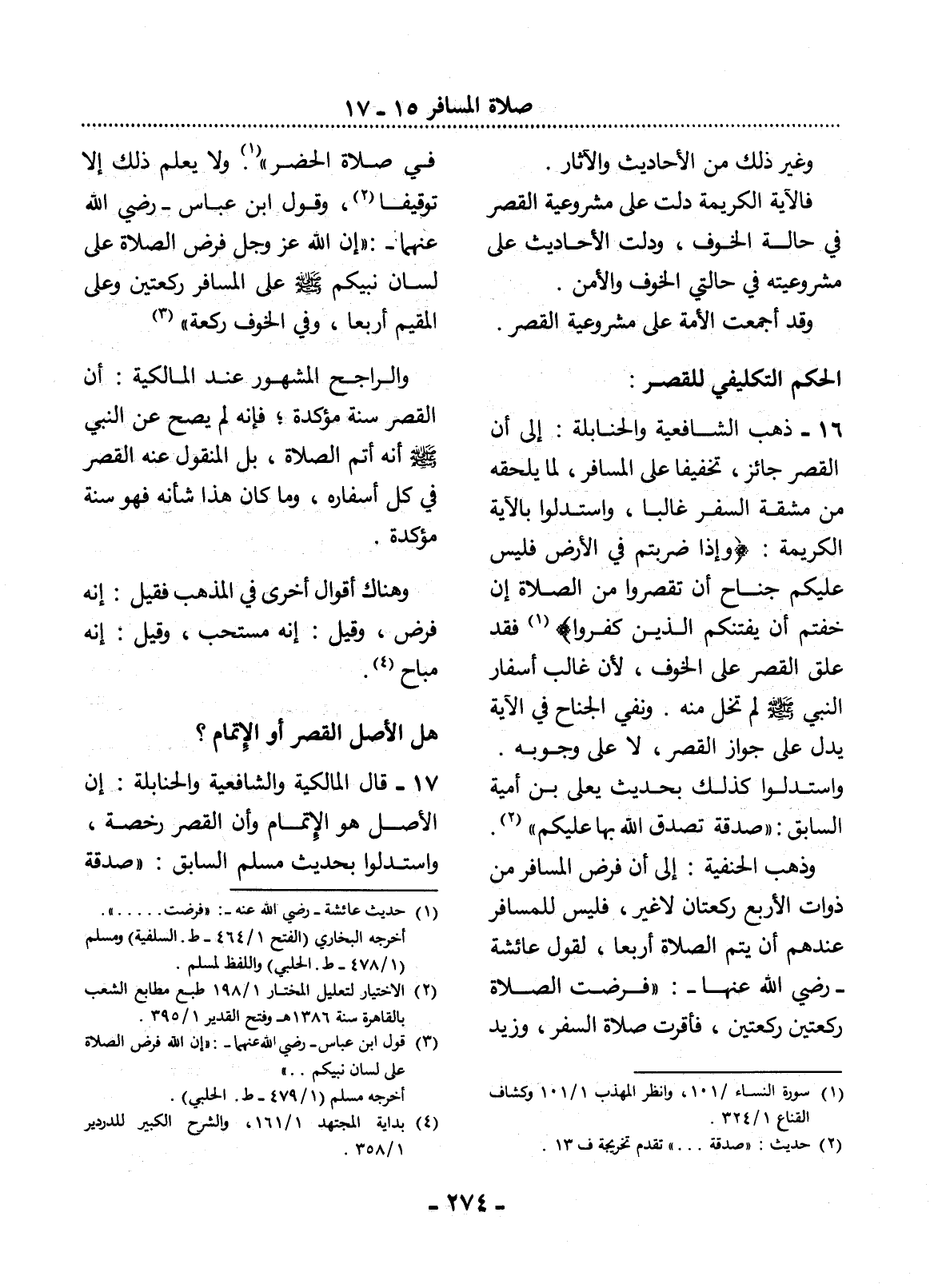 (1) سورة النساء / 101، وانظر المهذب 1 / 101 وكشاف القناع 1 / 324.