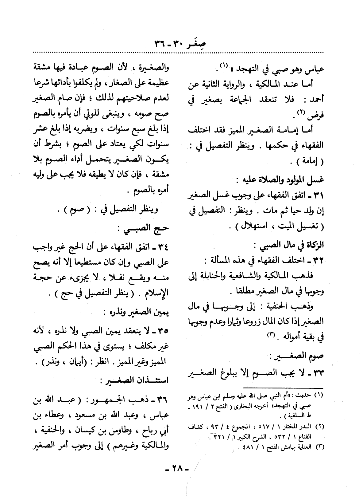 36 - ذَهَبَ الْجُمْهُورُ: (عَبْدُ اللَّهِ بْنُ عَبَّاسٍ، وَعَبْدُ اللَّهِ بْنُ مَسْعُودٍ، وَعَطَاءُ بْنُ أَبِي رَبَاحٍ، وَطَاوُسُ بْنُ كَيْسَانَ، وَالْحَنَفِيَّةُ، وَالْمَالِكِيَّةُ وَغَيْرُهُمْ) إِلَى وُجُوبِ أَمْرِ الصَّغِيرِ