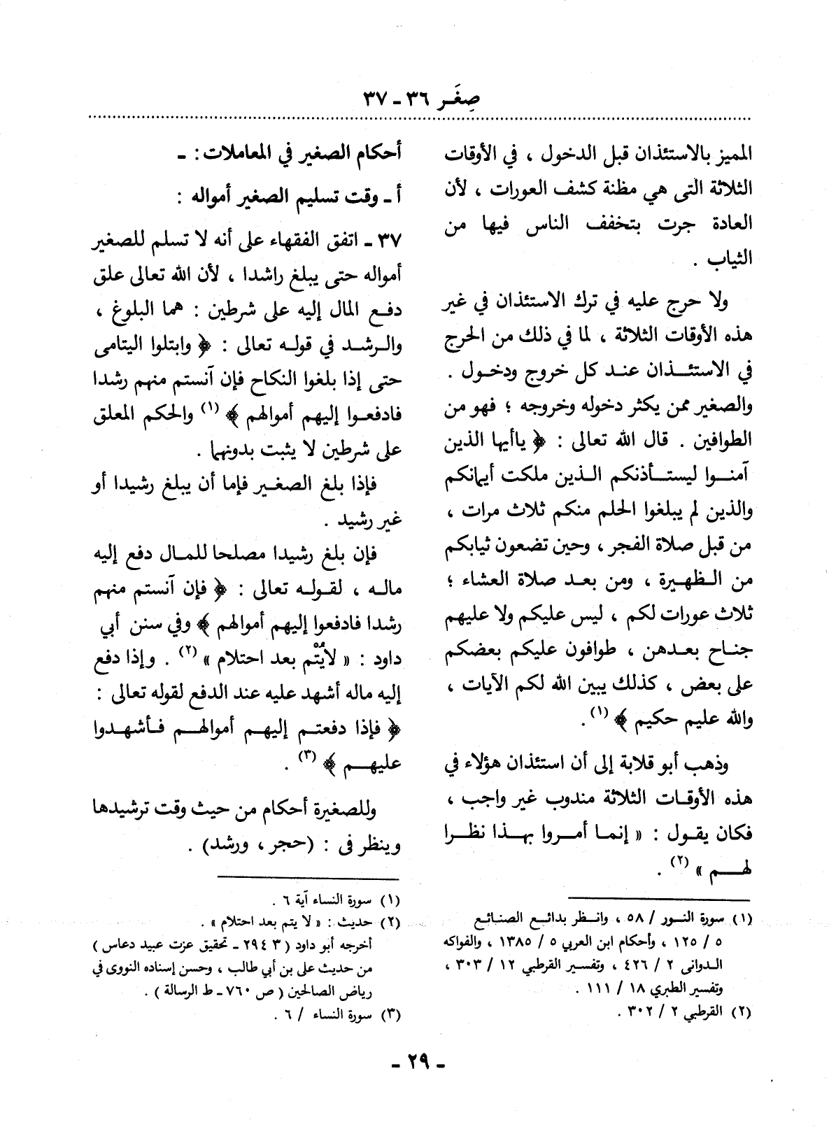 (1) سورة النور / 58، وانظر بدائع الصنائع 5 / 125، وأحكام ابن العربي 5 / 1385، والفواكه الدواني 2 / 426، وتفسير القرطبي 12 / 303، وتفسير الطبري 18 / 111.
