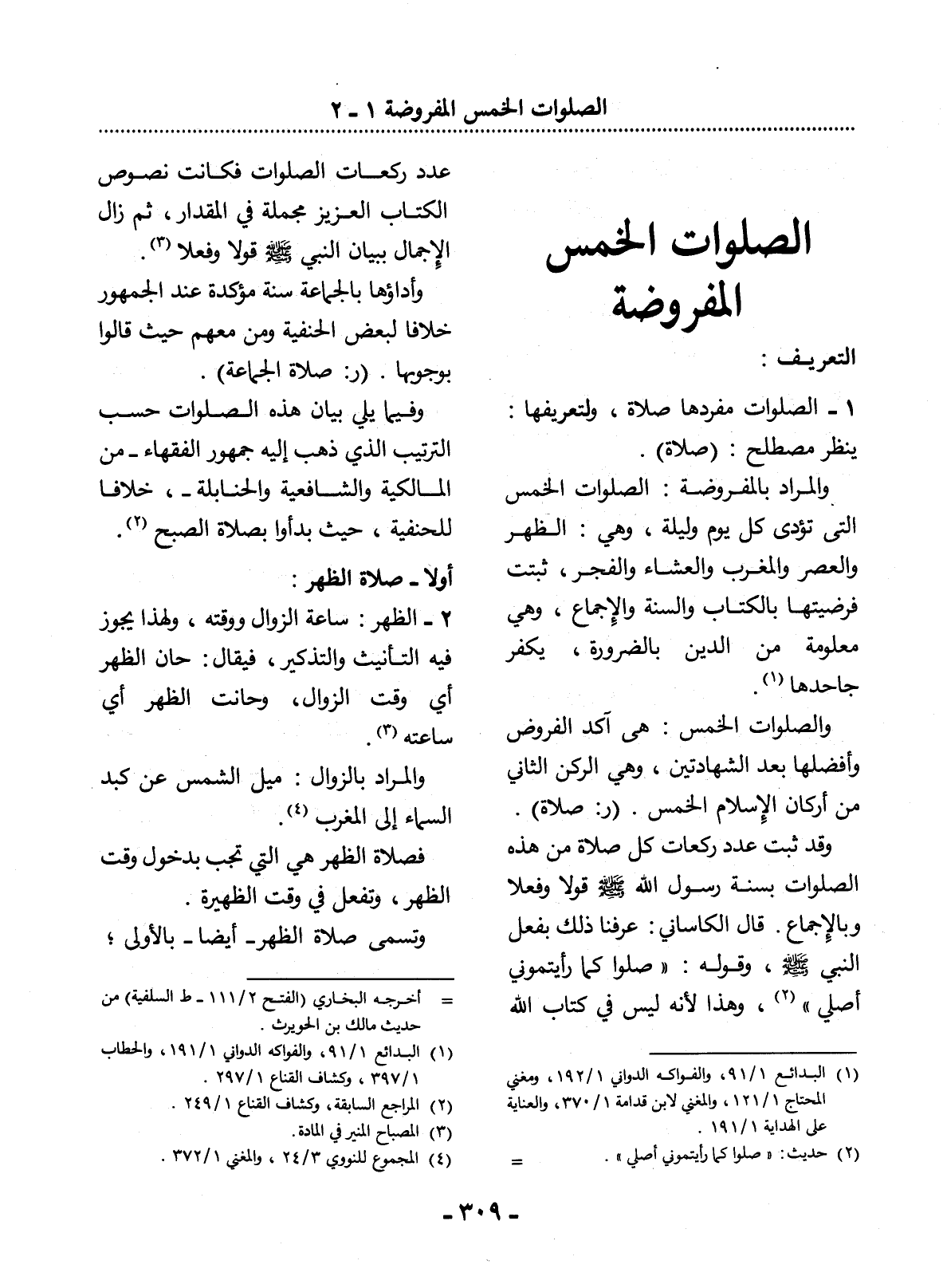 (1) البدائع 1 / 91، والفواكه الدواني 1 / 191، والحطاب 1 / 397، وكشاف القناع 1 / 297.