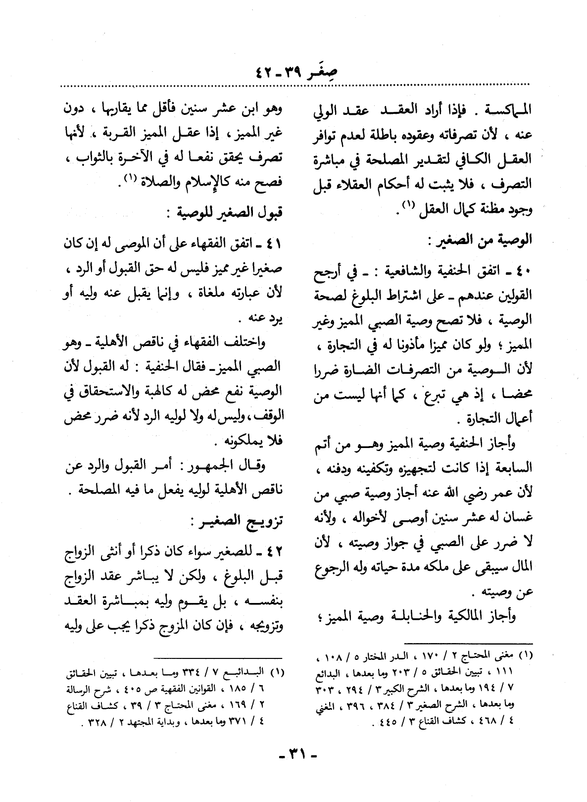 42 - لِلصَّغِيرِ سَوَاءٌ كَانَ ذَكَرًا أَوْ أُنْثَى الزَّوَاجُ قَبْل الْبُلُوغِ، وَلَكِنْ لاَ يُبَاشِرُ عَقْدَ الزَّوَاجِ بِنَفْسِهِ، بَل يَقُومُ وَلِيُّهُ بِمُبَاشَرَةِ الْعَقْدِ وَتَزْوِيجِهِ، فَإِنْ كَانَ الْمُزَوَّجُ ذَكَرًا يَجِبُ عَلَى وَلِيِّهِ