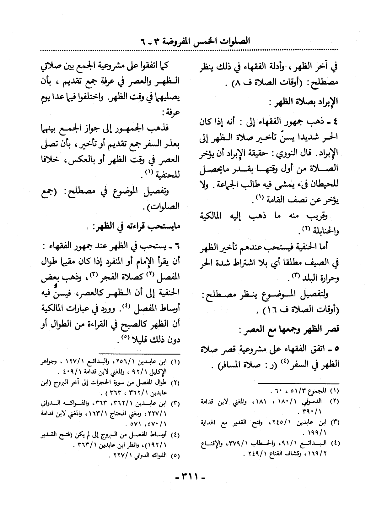 5 - اتَّفَقَ الْفُقَهَاءُ عَلَى مَشْرُوعِيَّةِ قَصْرِ صَلاَةِ الظُّهْرِ فِي السَّفَرِ (4) (ر: صَلاَةُ الْمُسَافِرِ) .