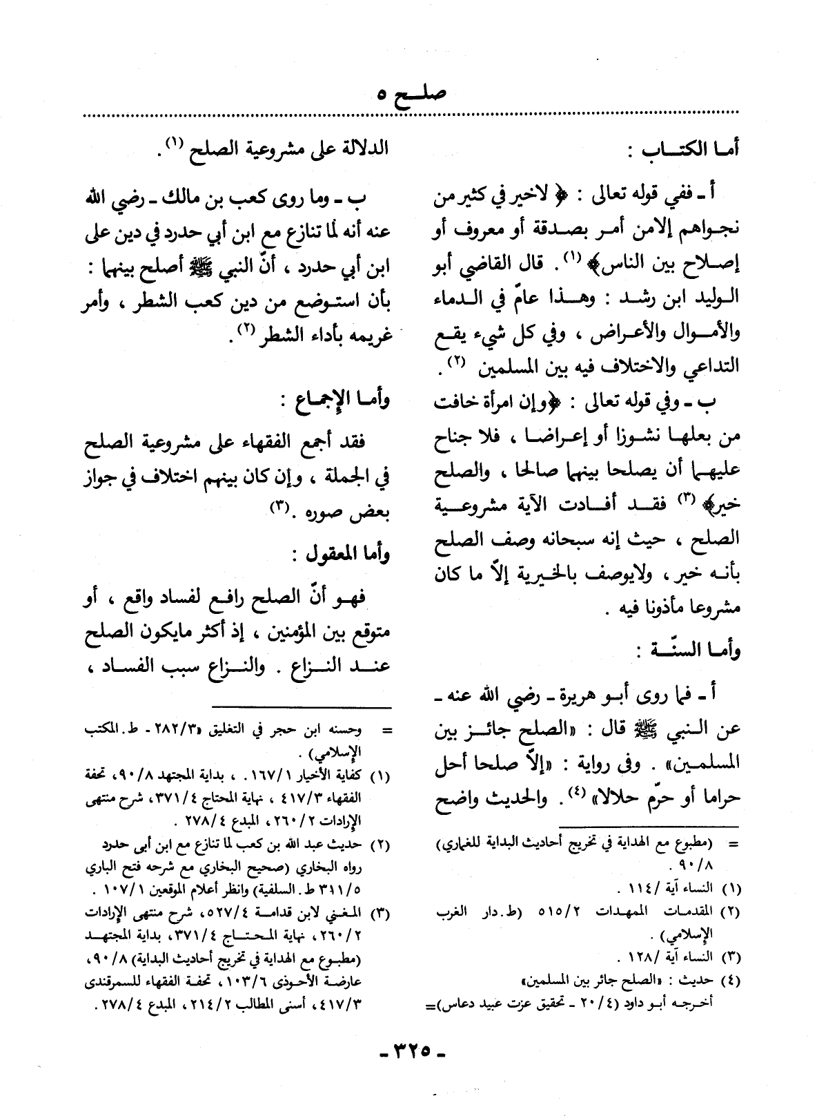 الدَّلاَلَةِ عَلَى مَشْرُوعِيَّةِ الصُّلْحِ (1) .