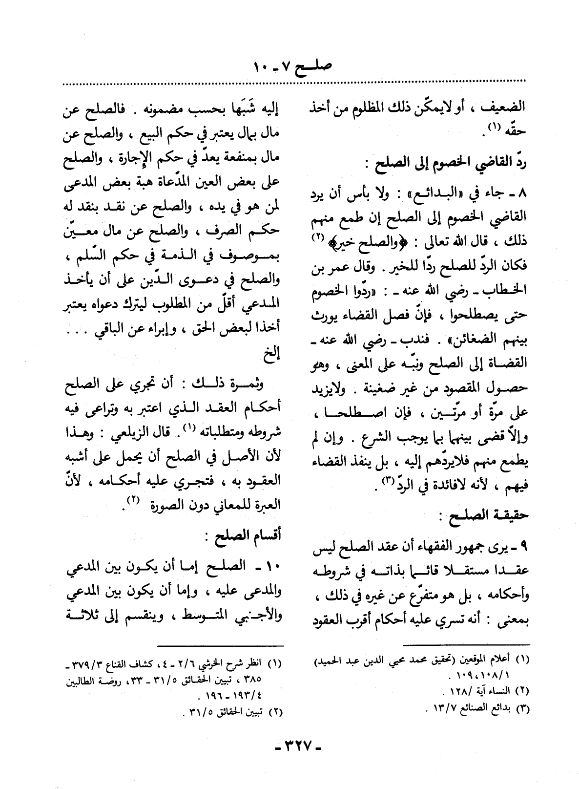10 - الصُّلْحُ إِمَّا أَنْ يَكُونَ بَيْنَ الْمُدَّعِي وَالْمُدَّعَى عَلَيْهِ، وَإِمَّا أَنْ يَكُونَ بَيْنَ الْمُدَّعِي وَالأَْجْنَبِيِّ الْمُتَوَسِّطِ، وَيَنْقَسِمُ إِلَى ثَلاَثَةِ