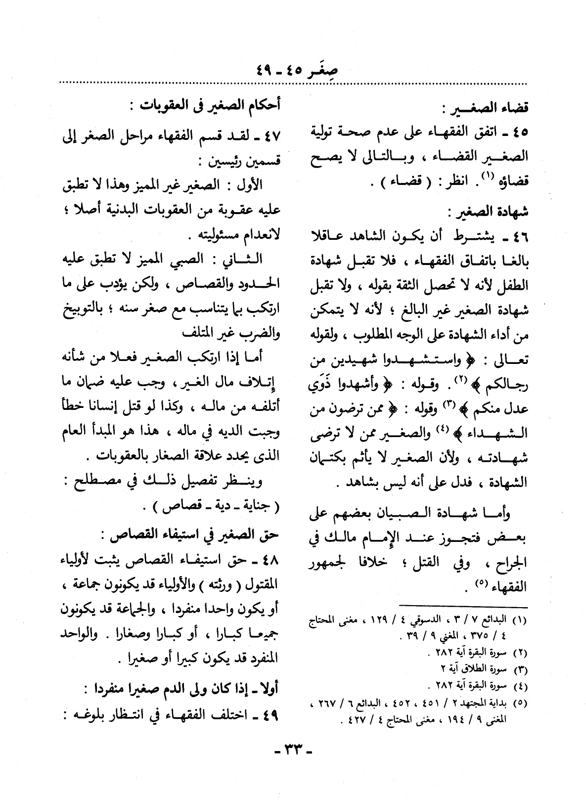 45 - اتَّفَقَ الْفُقَهَاءُ عَلَى عَدَمِ صِحَّةِ تَوْلِيَةِ الصَّغِيرِ الْقَضَاءَ، وَبِالتَّالِي لاَ يَصِحُّ قَضَاؤُهُ (1) . انْظُرْ: (قَضَاء) .