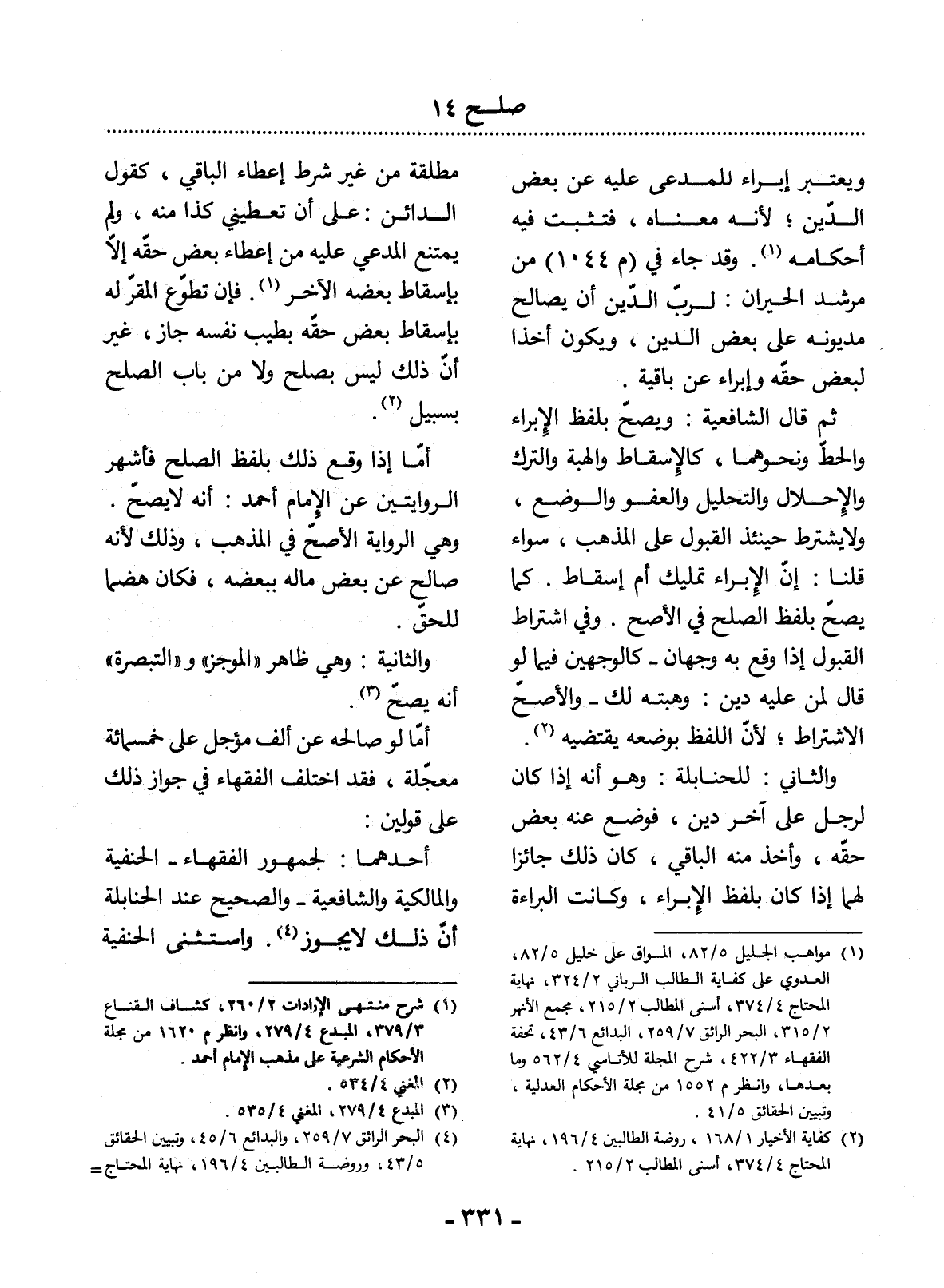 (1) مواهب الجليل 5 / 82، المواق على خليل 5 / 82، العدوي على كفاية الطالب الرباني 2 / 324، نهاية المحتاج 4 / 374، أسنى المطالب 2 / 215، مجمع الأنهر 2 / 315، البحر الرائق 7 / 259، البدائع 6 / 43، تحفة الفقهاء 3 / 422، شرح المجلة للأتاسي 4 / 562، وما بعدها وانظر م 1552 من مجلة الأحكام العدلية، وتبيين الحقائق 5 / 41