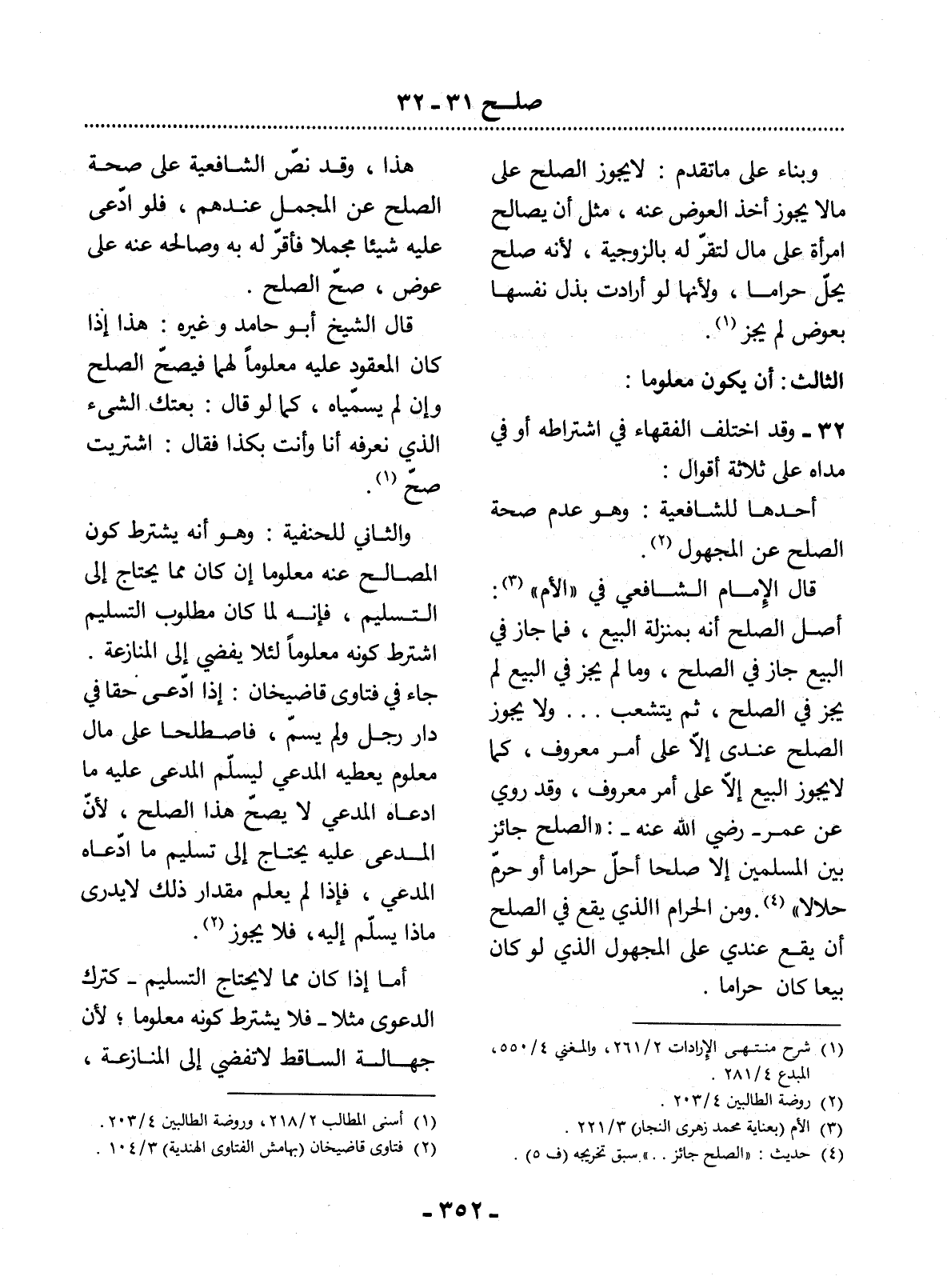 أَحَدِهَا لِلشَّافِعِيَّةِ: وَهُوَ عَدَمُ صِحَّةِ الصُّلْحِ عَنِ الْمَجْهُول. (2)