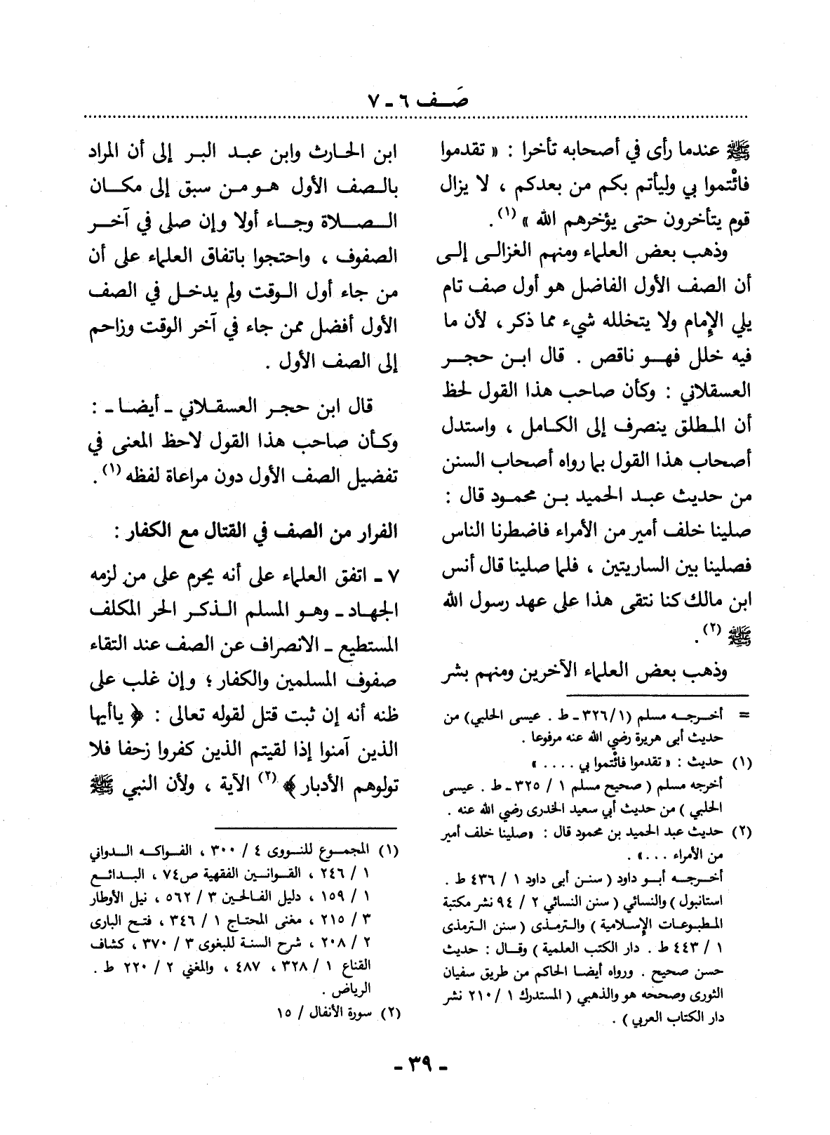 (1) حديث: " تقدموا فائتموا بي. . . " أخرجه مسلم (صحيح مسلم 1 / 325 - ط. عيسي الحلبي) من حديث أبي سعيد الخدري رضي الله عنه.